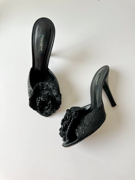 Dolce & Gabbana Black Rose Heels (EU 39 / IT 38)