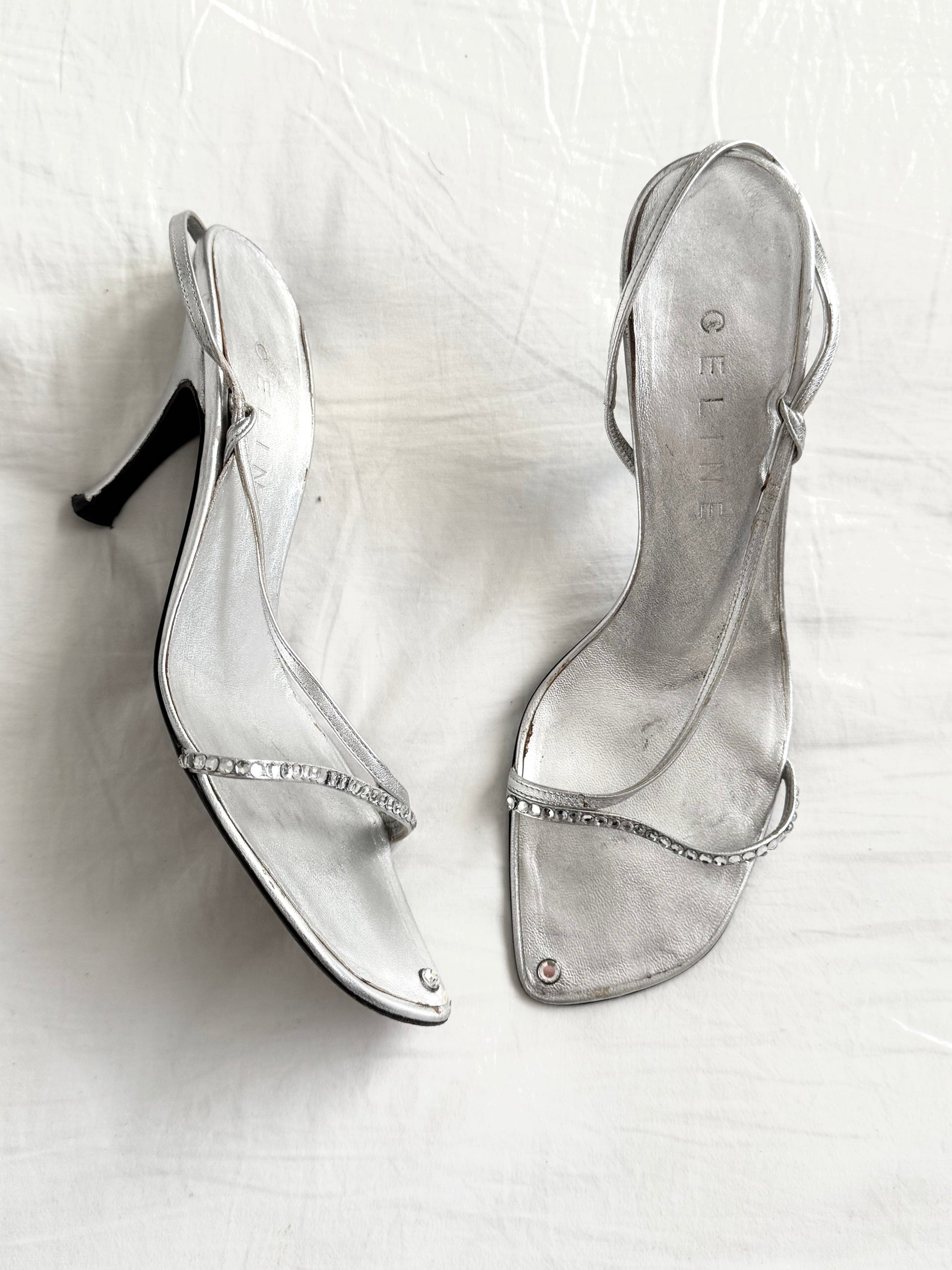 Celine Vintage Silver Rhinestone Sandals (EU 38,5)