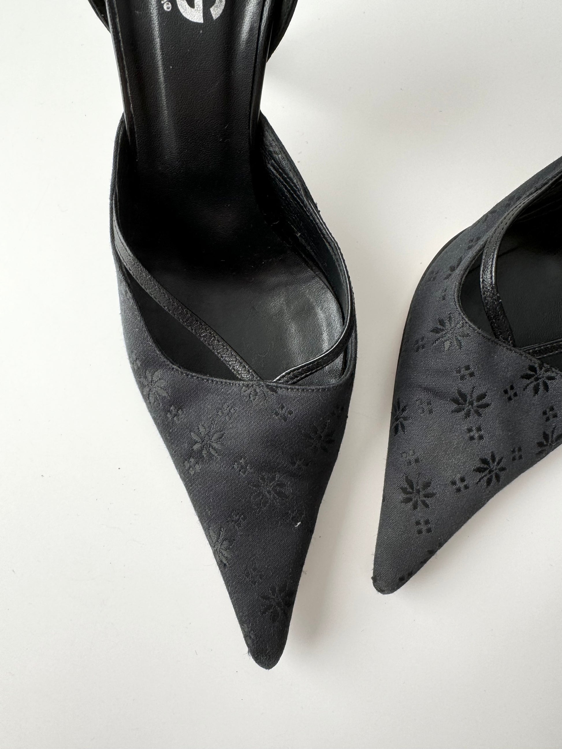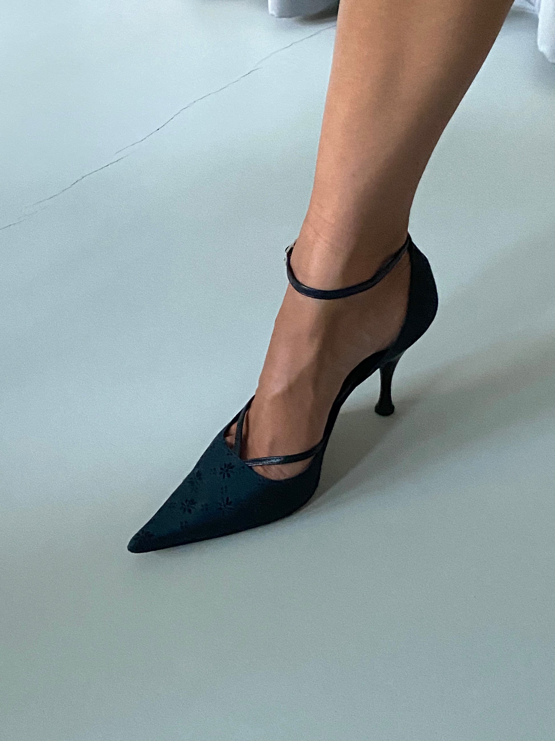 Stunning vintage Dolce heels in classic style with a subtle jacquard pattern all over. An absolute classic and a must-have in your vintage collection! Femme Fatale vibes. The last photos show the same model in pink worn by Cindy Kimberly.