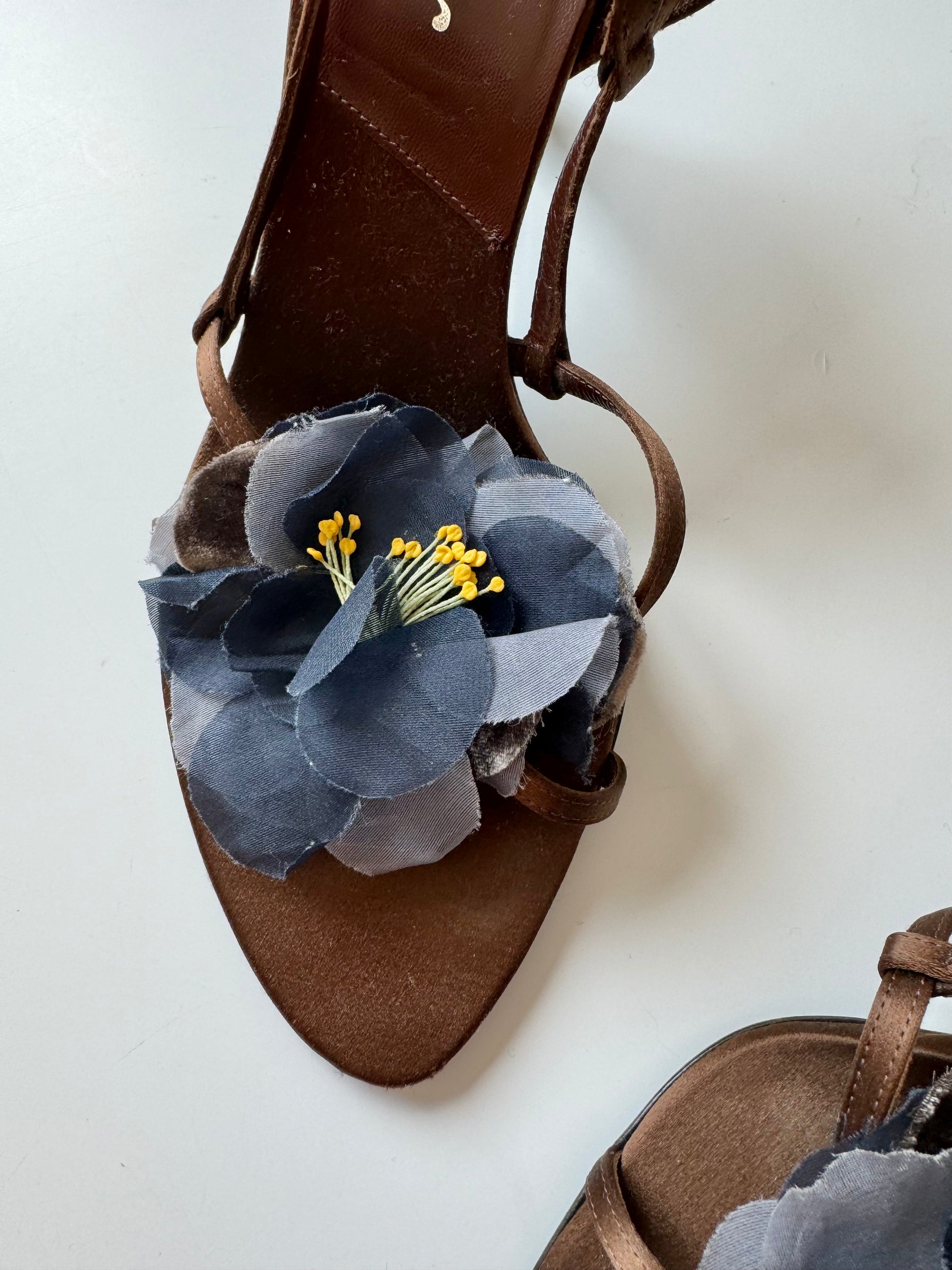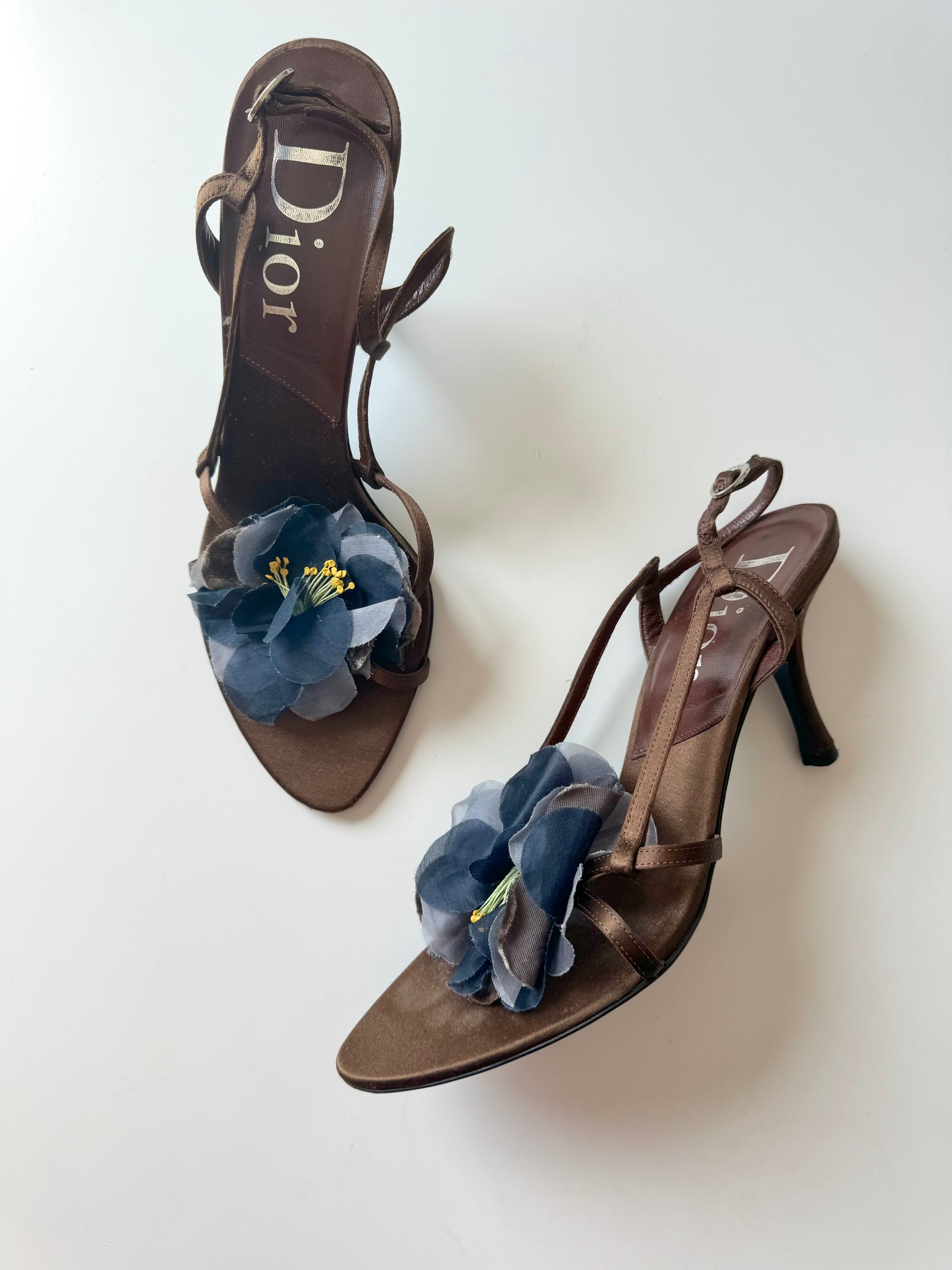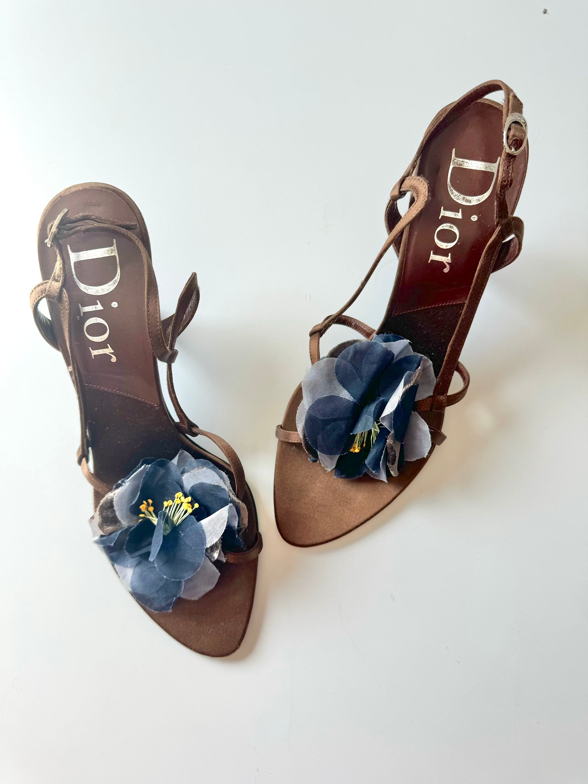 Stunning vintage Dior heels by John Galliano with a blue flower detailing. They look absolutely gorgeous on the feet and add a touch of glamour to even the simplest outfit. Something Carrie Bradshaw would wear! Sold with an original Dior dust bag.