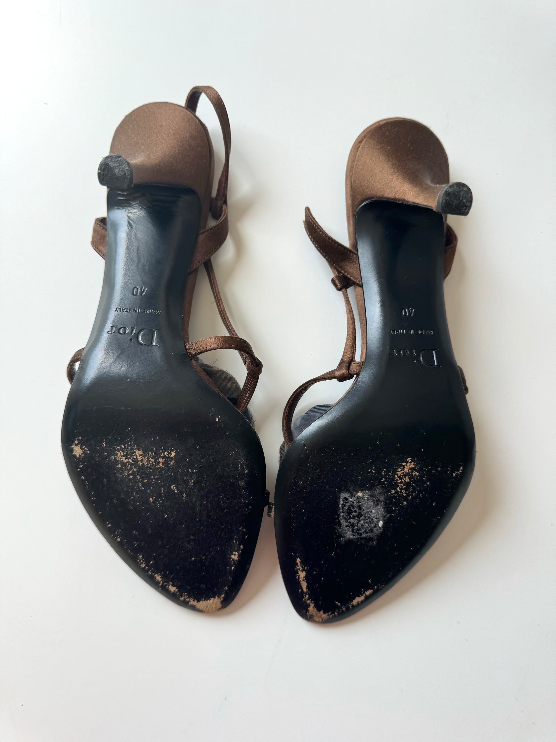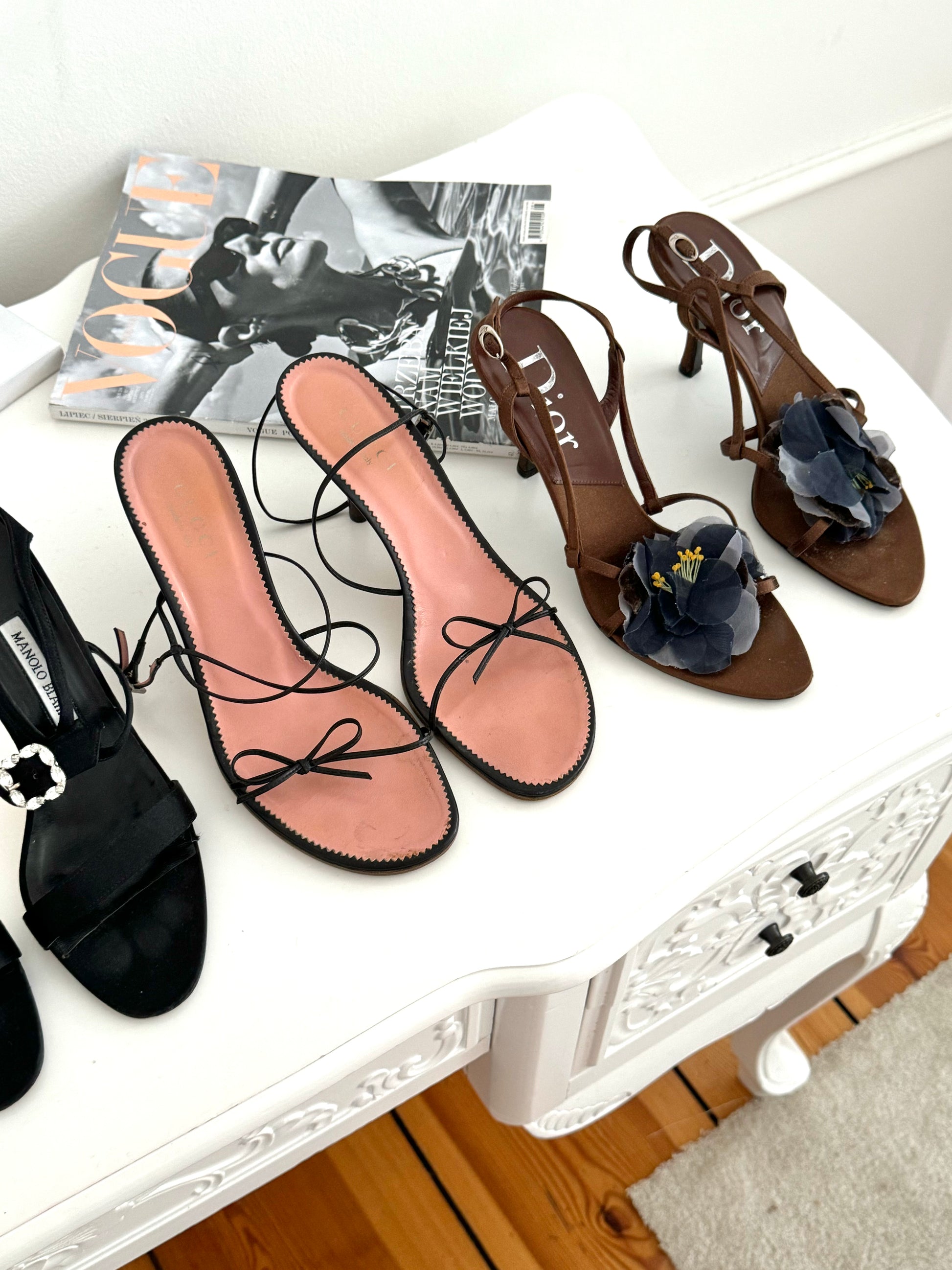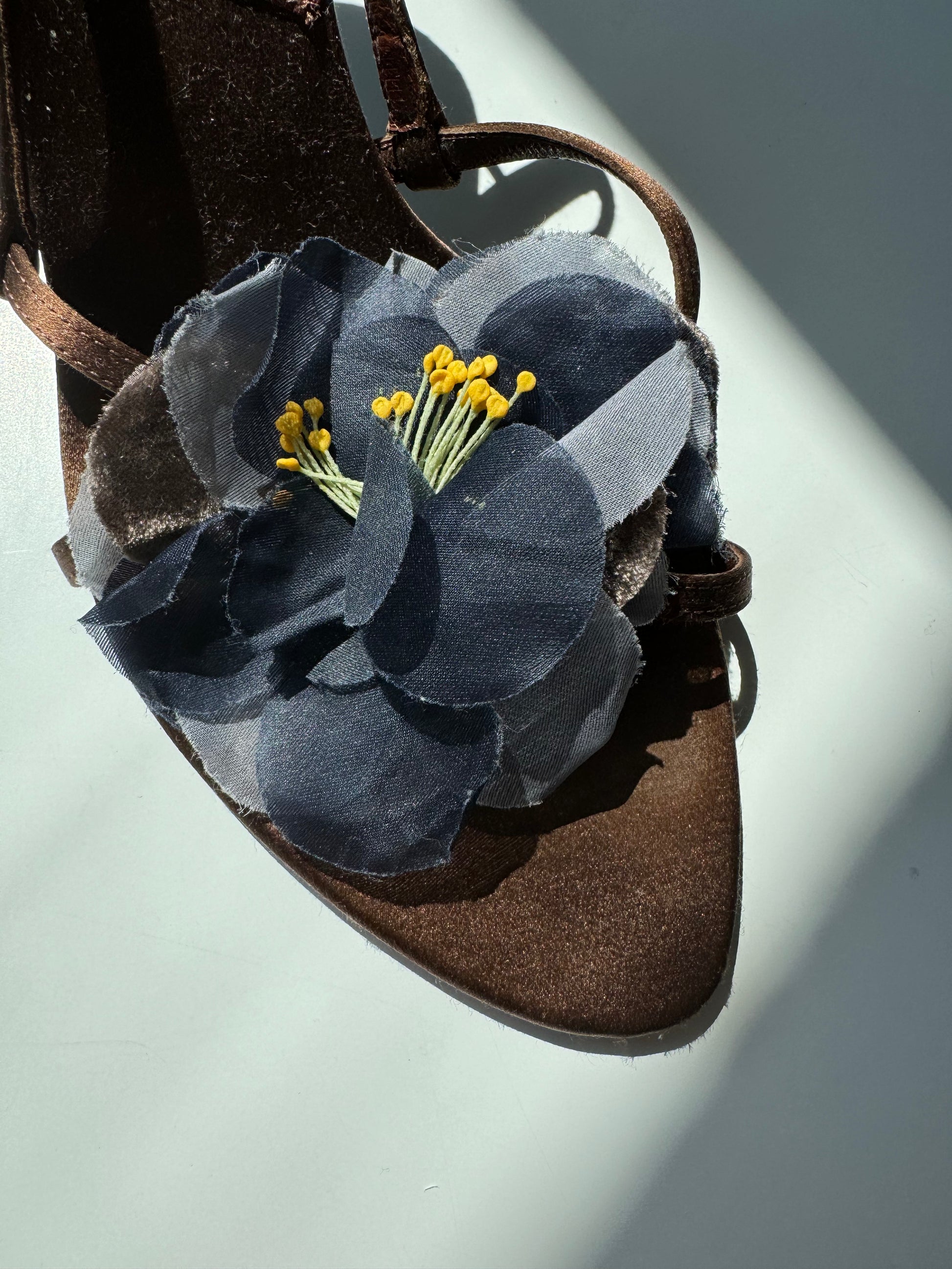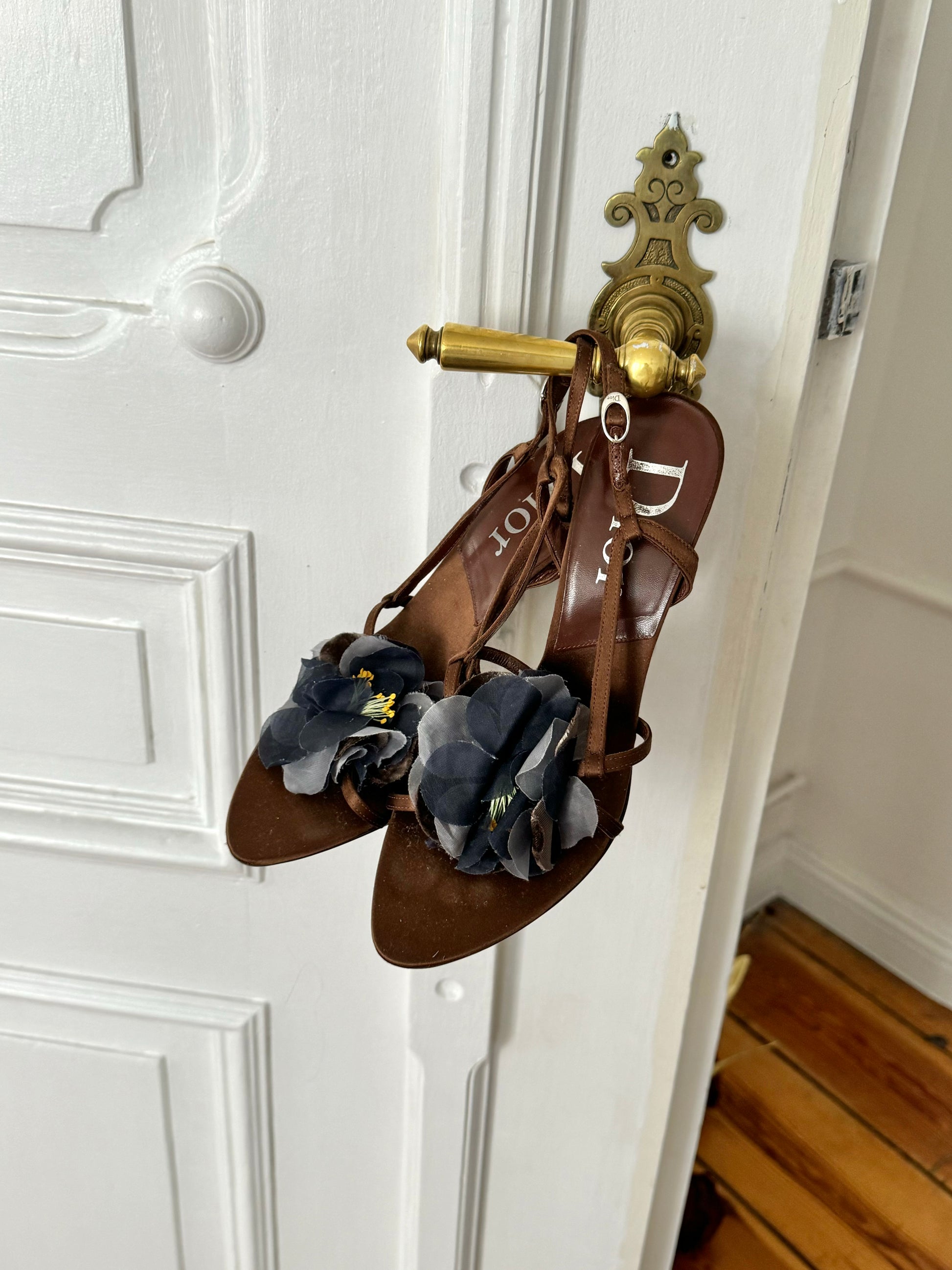 Stunning vintage Dior heels by John Galliano with a blue flower detailing. They look absolutely gorgeous on the feet and add a touch of glamour to even the simplest outfit. Something Carrie Bradshaw would wear! Sold with an original Dior dust bag.