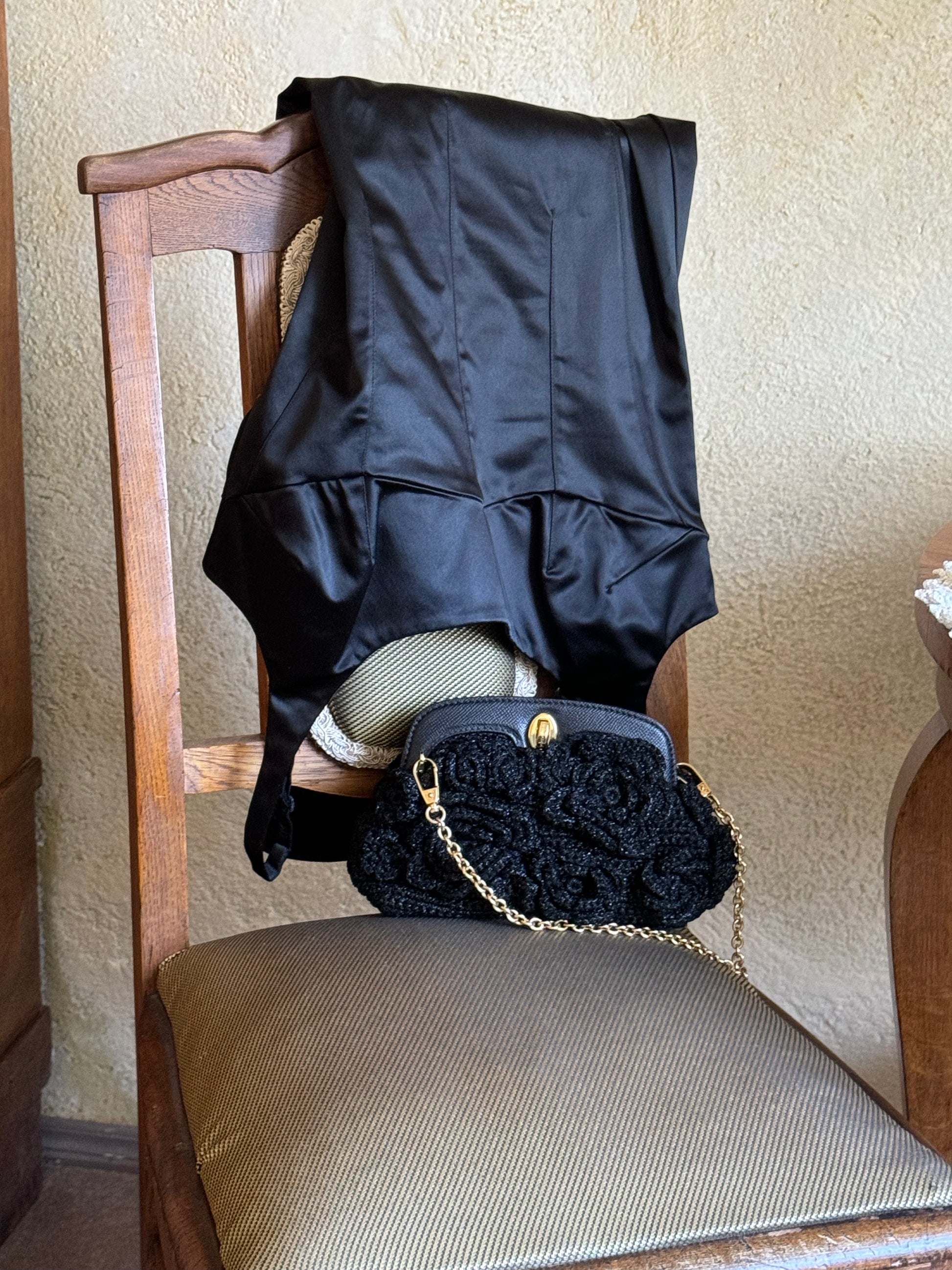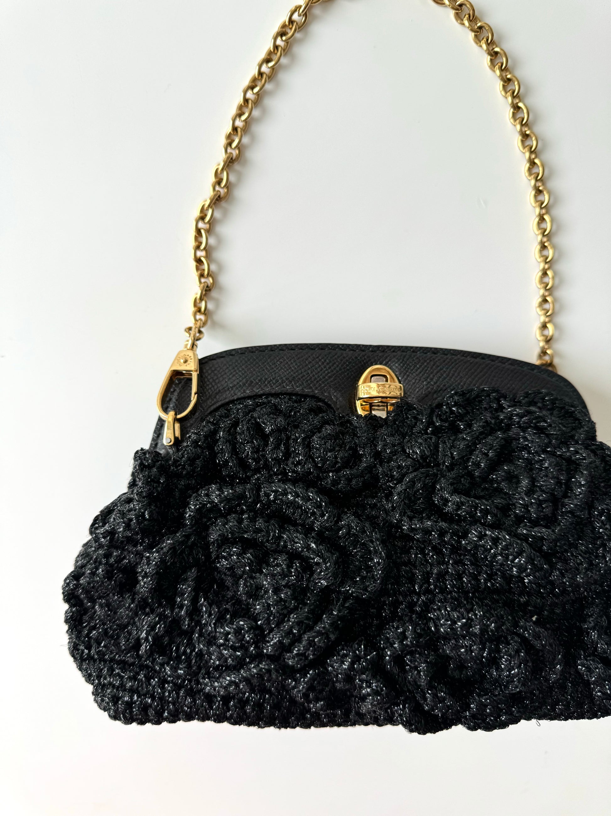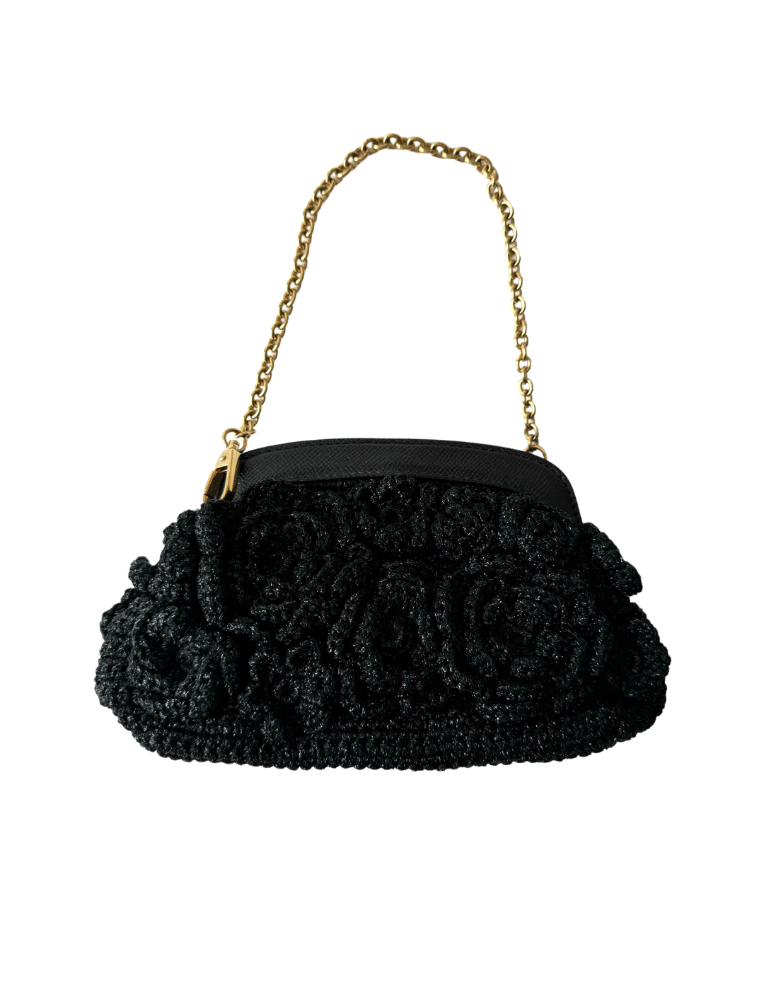 Stunning DG bag in vintage style that's simply made for strolling around streets of Palermo like Sophia Loren or Monica Bellucci. The purse in classic DG aesthetic is adorned with black roses, gold, DG-signed hardware, and an animal print lining. Take it with you on your next Dolce Vita trip!