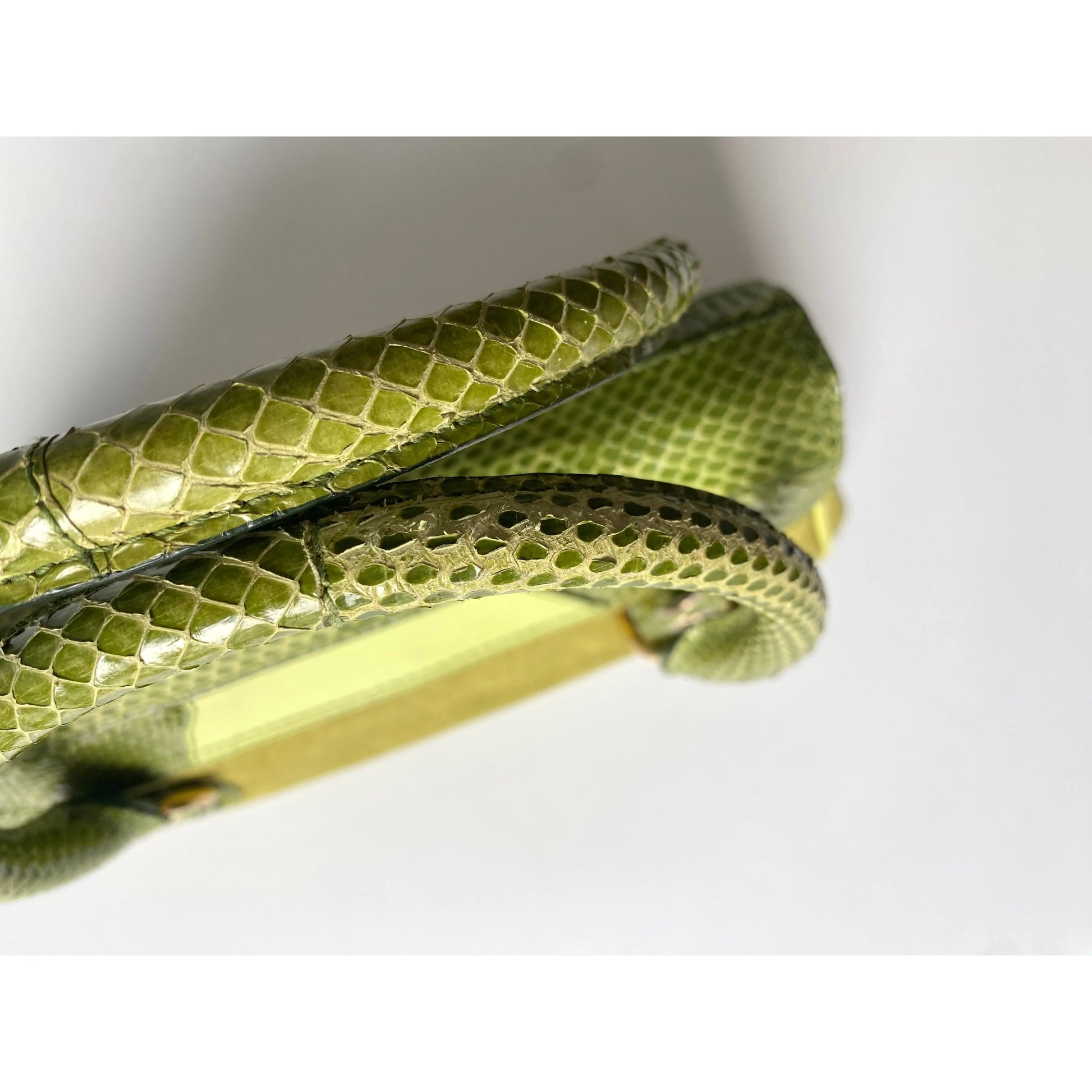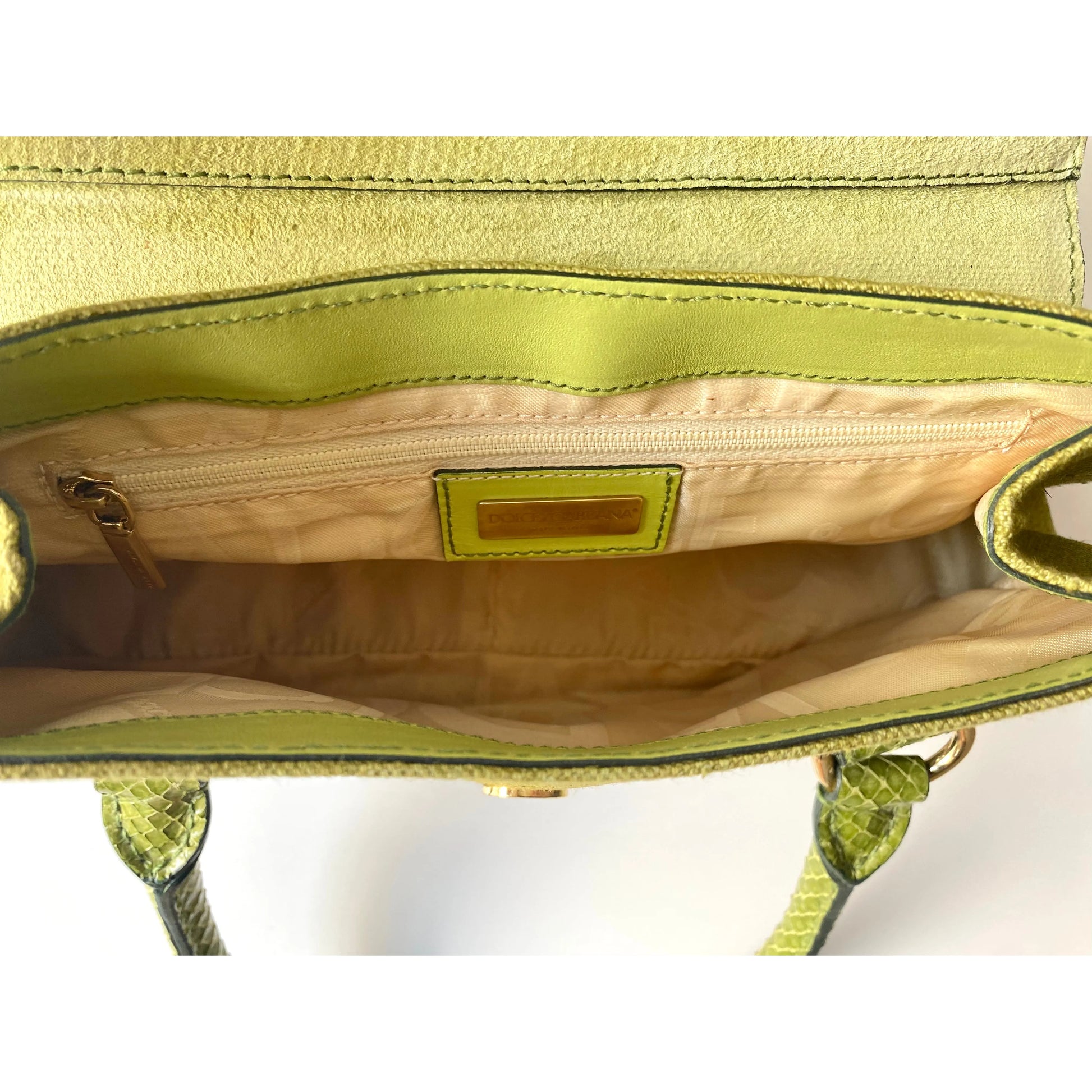 Vintage green handbag by the Italian fashion house Dolce and Gabbana from the early 2000s. The pop of color you need to elevate your daily outfit! Combines python-style leather, canvas, and silver hardware. Professionally cleaned before shipping.