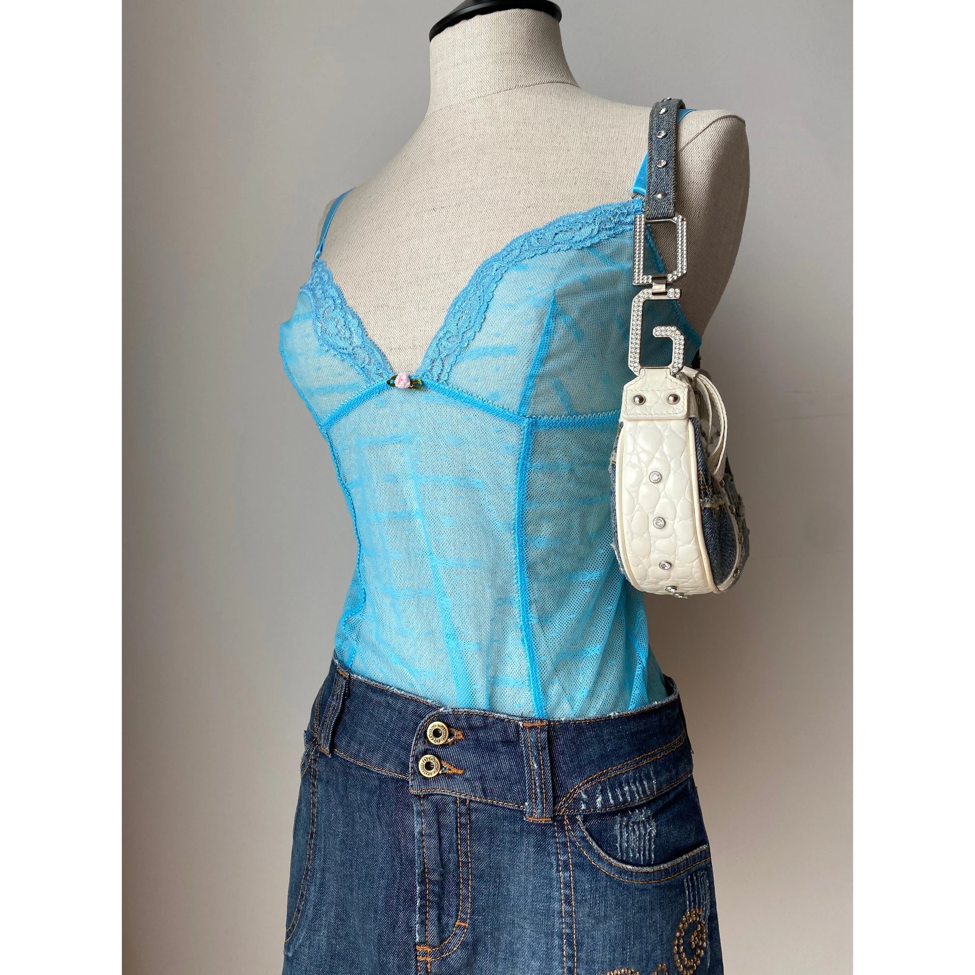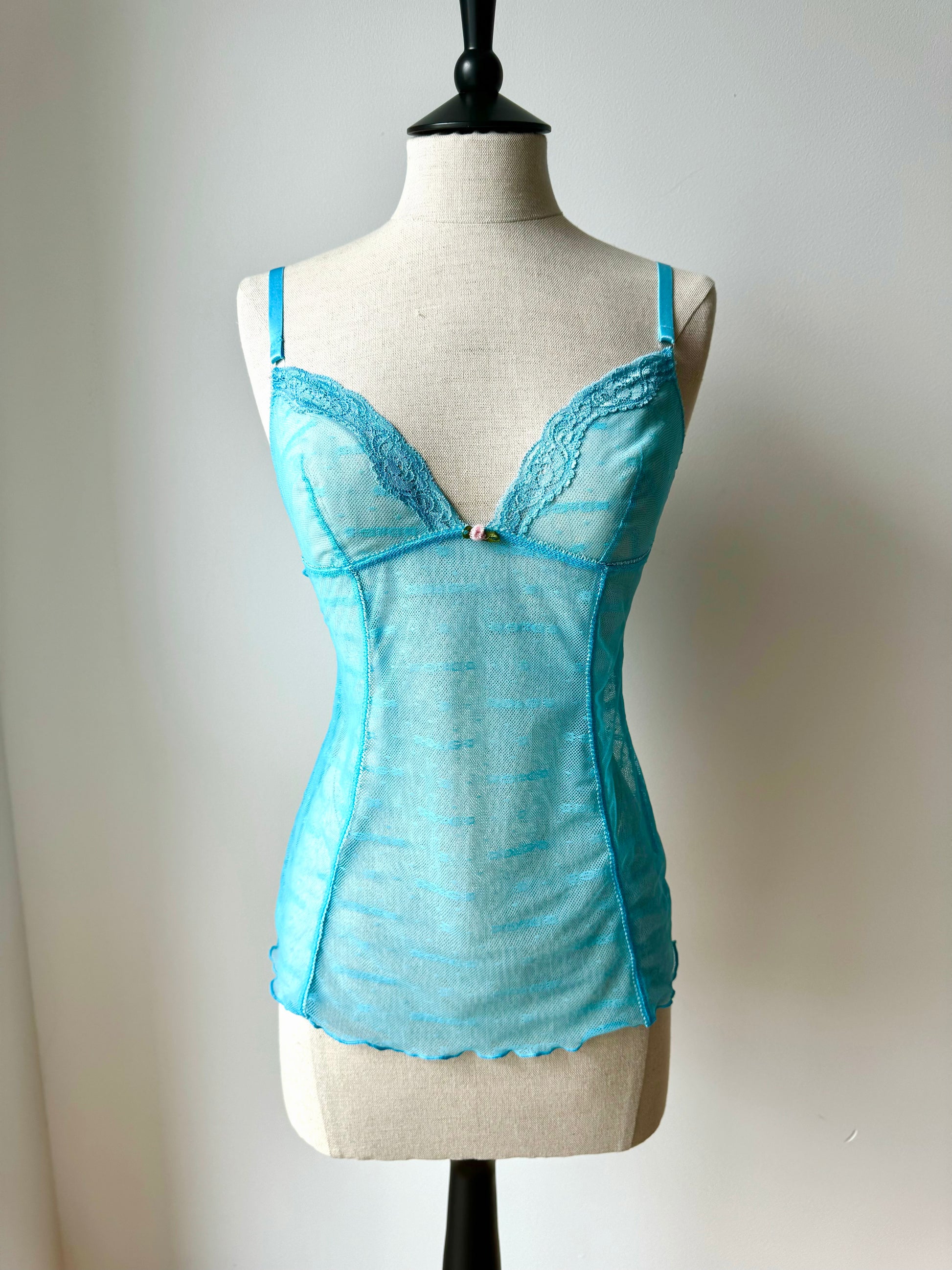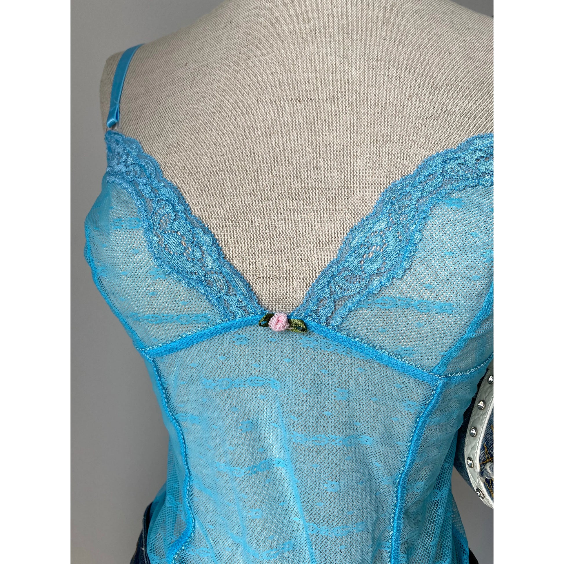 The dreamiest vintage Dolce top with lace and rose detailing! Stunning blue mesh with subtle D&G logo. Meant to be treasured forever. Sold with original tag and packaging.