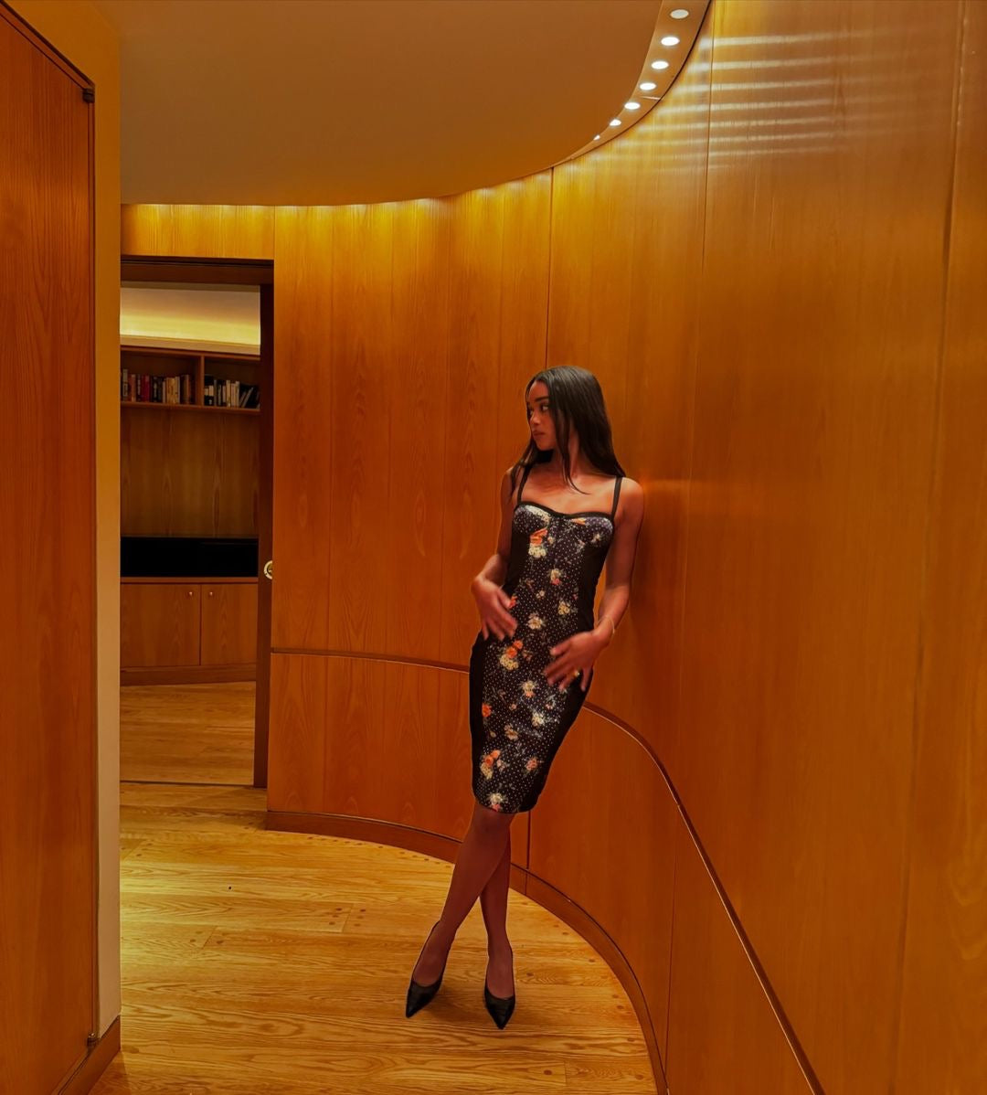 This particular dress was worn on the red carpet by Megan Fox in 2004 for the "Confessions Of A Teenage Drama Queen" premiere. In 2024 Laura Harrier wore the same design on her Instagram posts (see below).Â