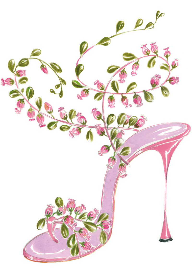 Absolutely gorgeous Manolo Blahnik heels in the iconic rose vines model. Very classy and feminine design adorned with small leather flowers and leaves that look beautiful on feet, complementing its shape. Very romantic and perfect for dates and as bridal heels - one of the rarest and most desirable heels on the market!Â