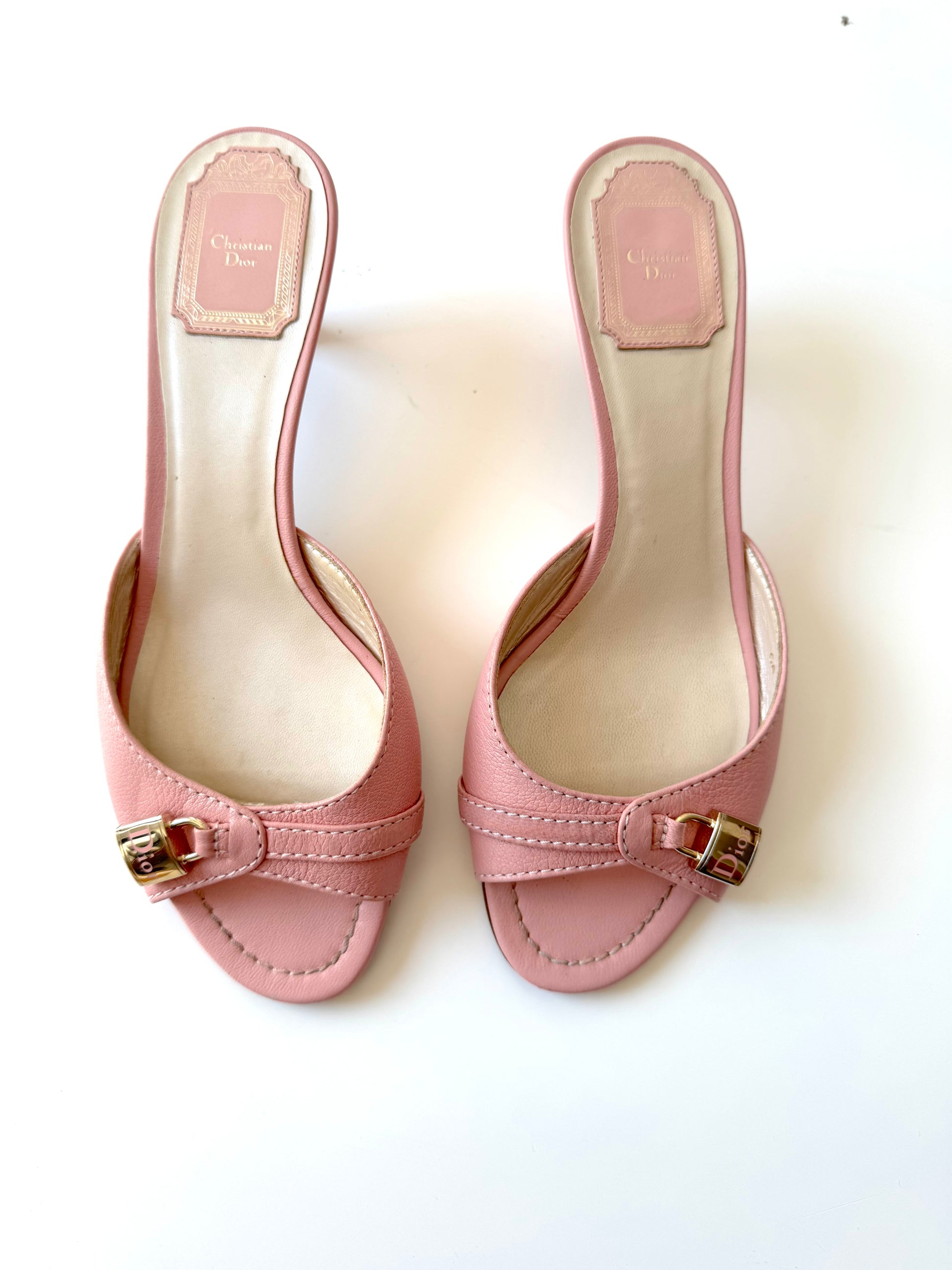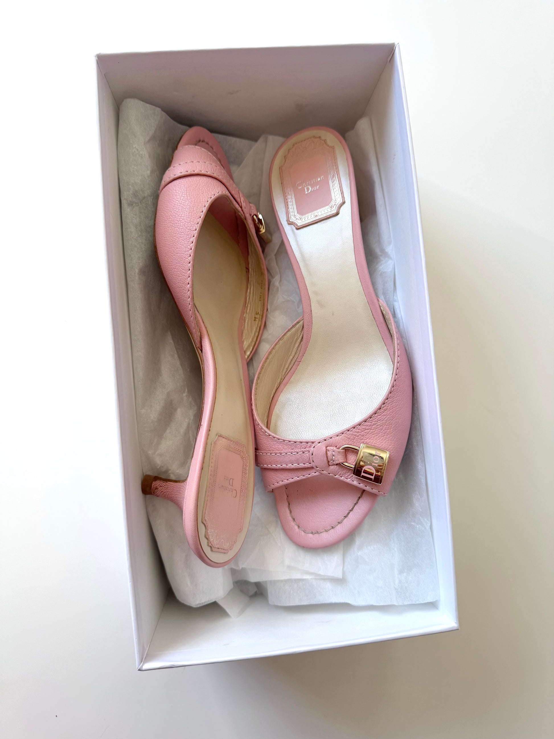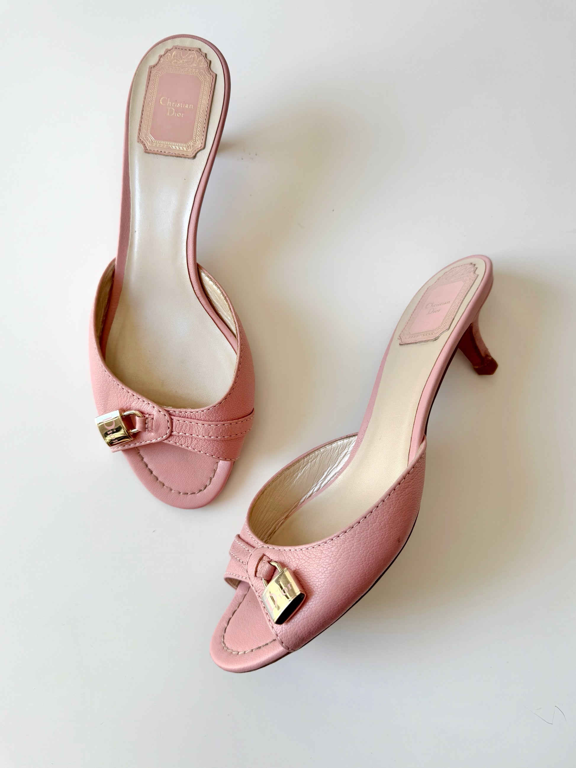ICONIC Vintage Dior Lock Charm Pink Mules (EU 38)