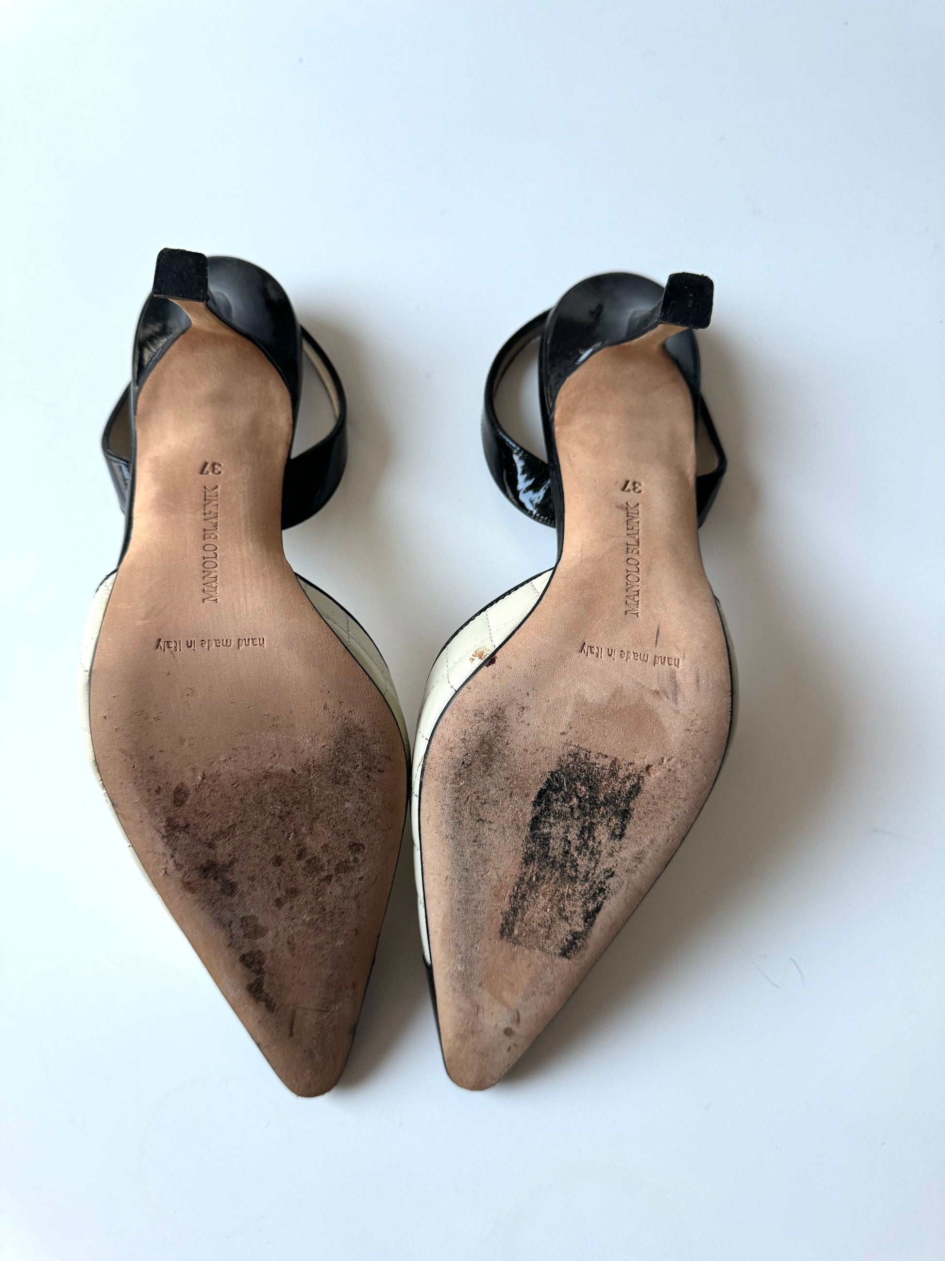 Manolo Blahnik Bicolor Cream & Black Pumps (EU 37)