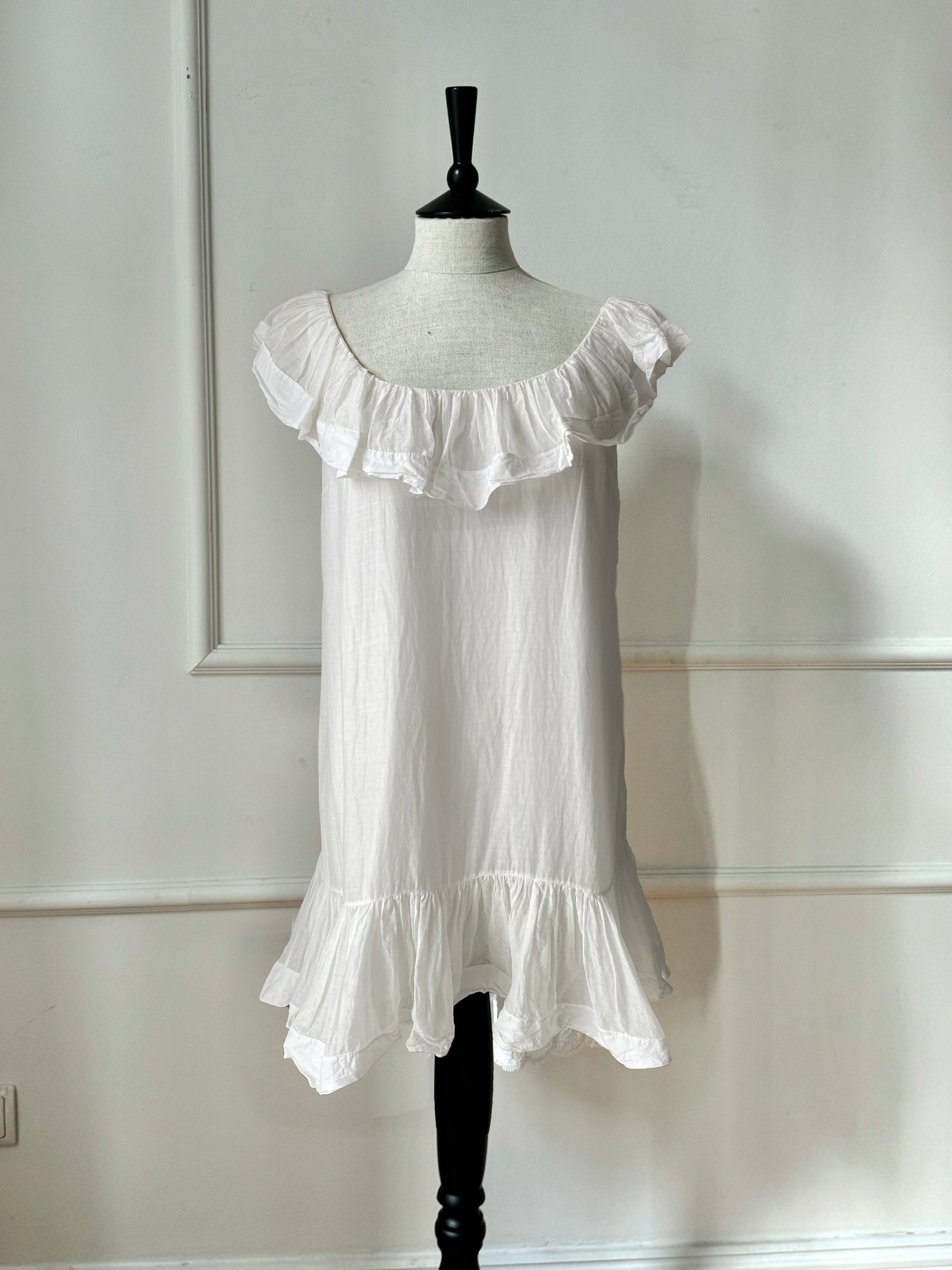 The most lovely Valentino dress with ruffles at the top and the bottom. Very soft fabric with a subtle pointelle-like jacquard pattern. Meant to be treasured forever. Professionally cleaned before shipping.