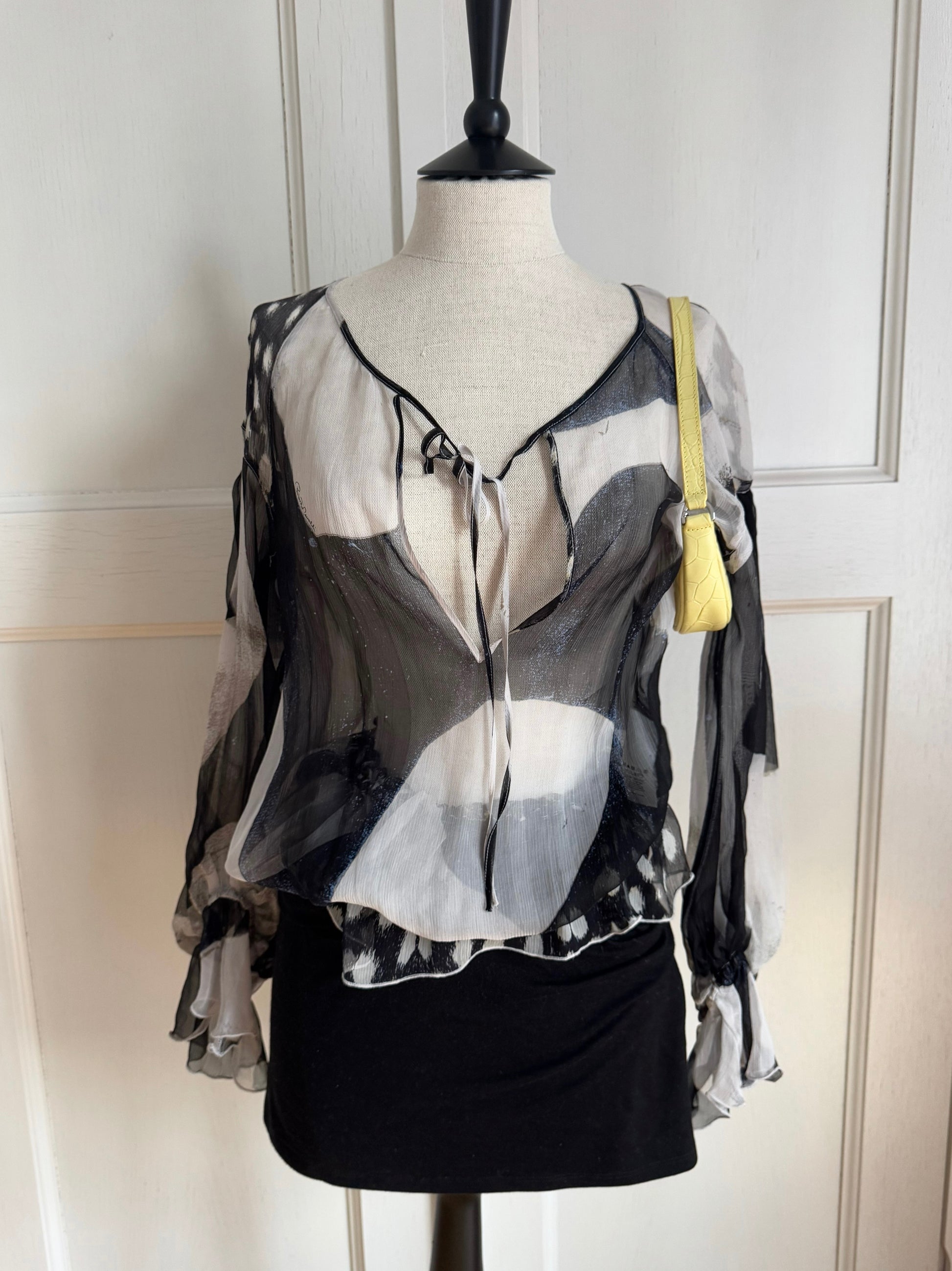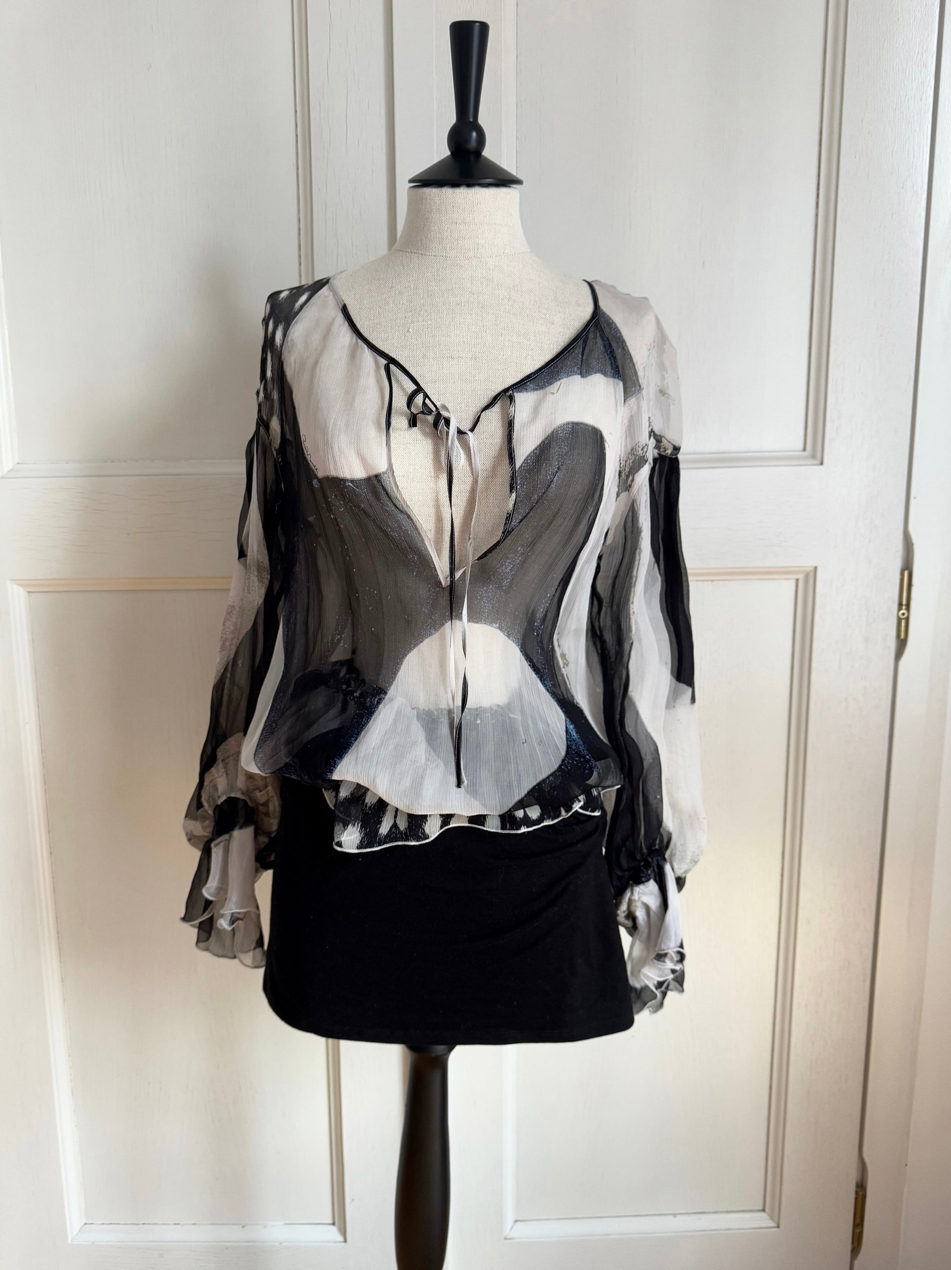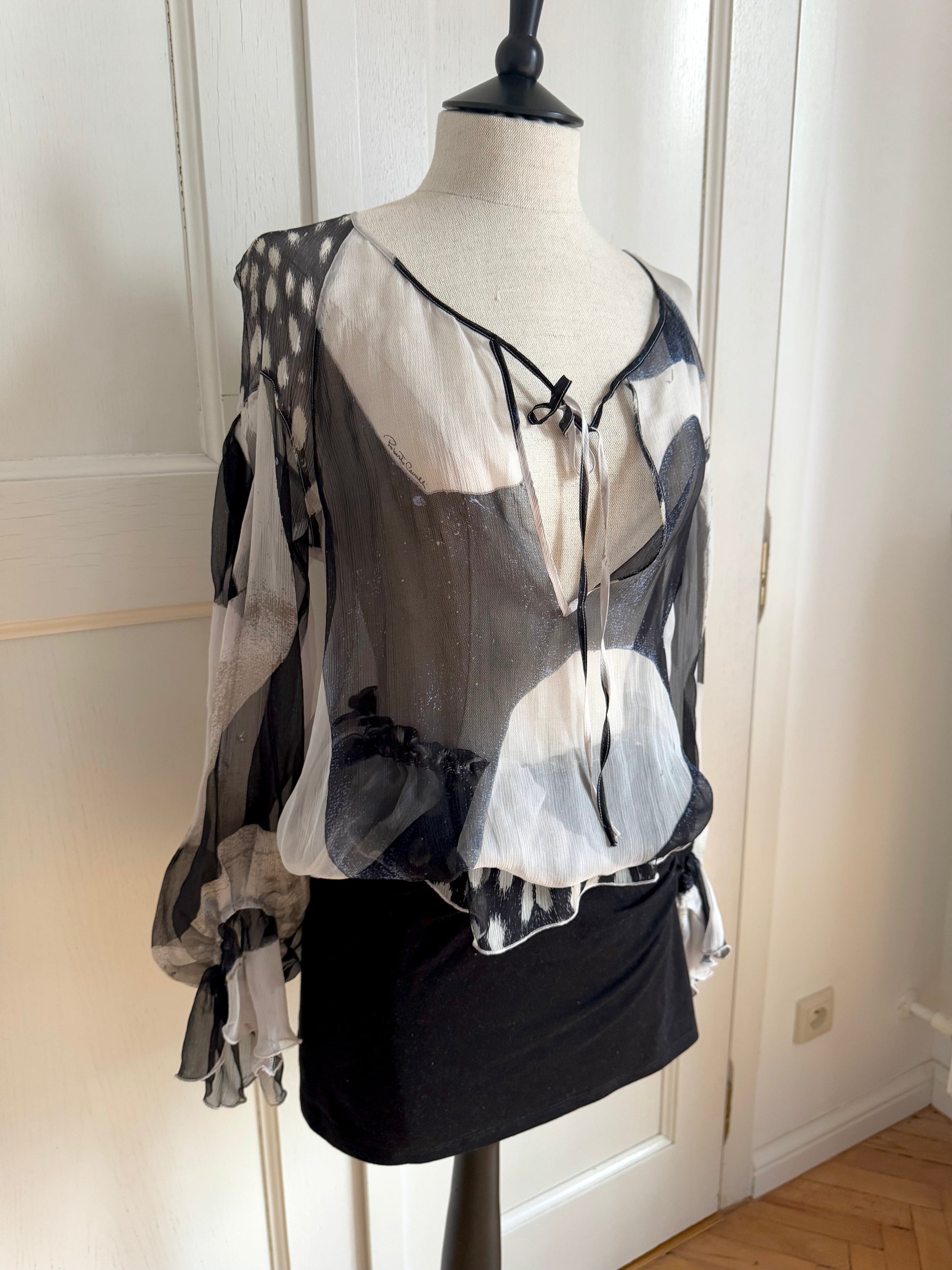 Stunning Roberto Cavalli blouse in his iconic animal print. An absolute statement piece! Pair it with a cowboy boots fort the ultimate Western Trend outfit.