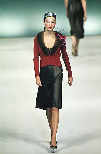When the fur cardigans were introduced by Blumarine in the 90s they immediately became a brand's staple. The most popular versions of this trend included the cardigan & skirt sets and the twin set. Nowadays, the set is so closely associated with the y2k style that it even appeared in the Euphoria series on Maddy Perez (played by Alexa Demie). Blumarine also released new versions of the famous cardigan with eco fur in 2021 f/w collection with prices around 950 euro for the cardigan alone.Â