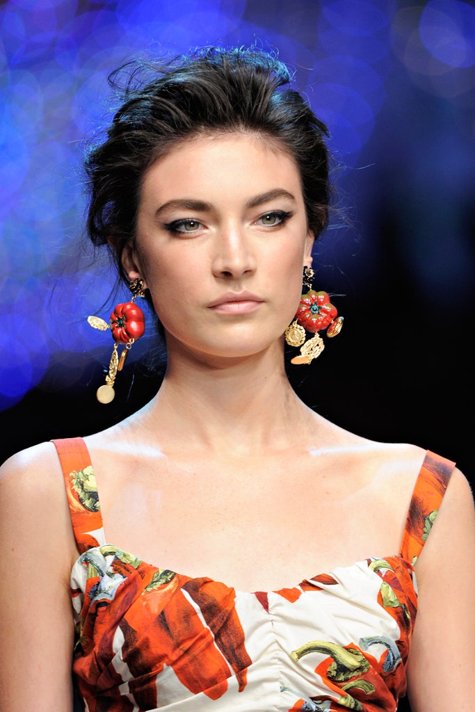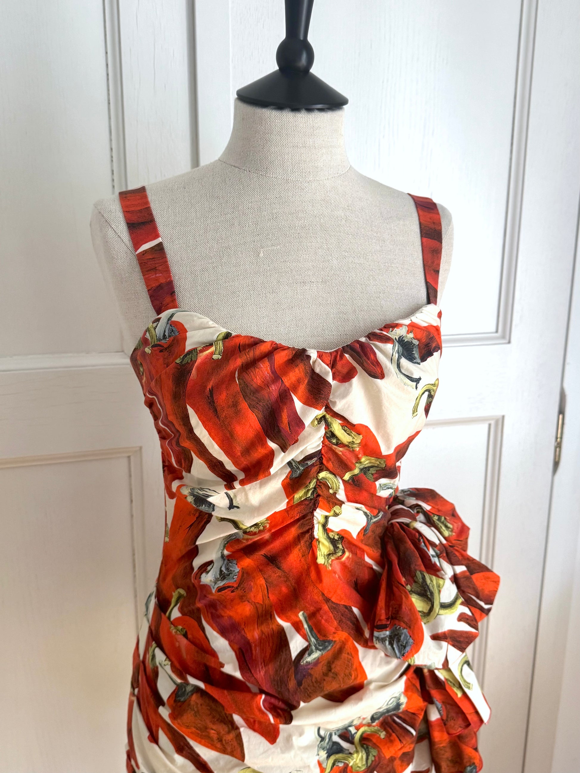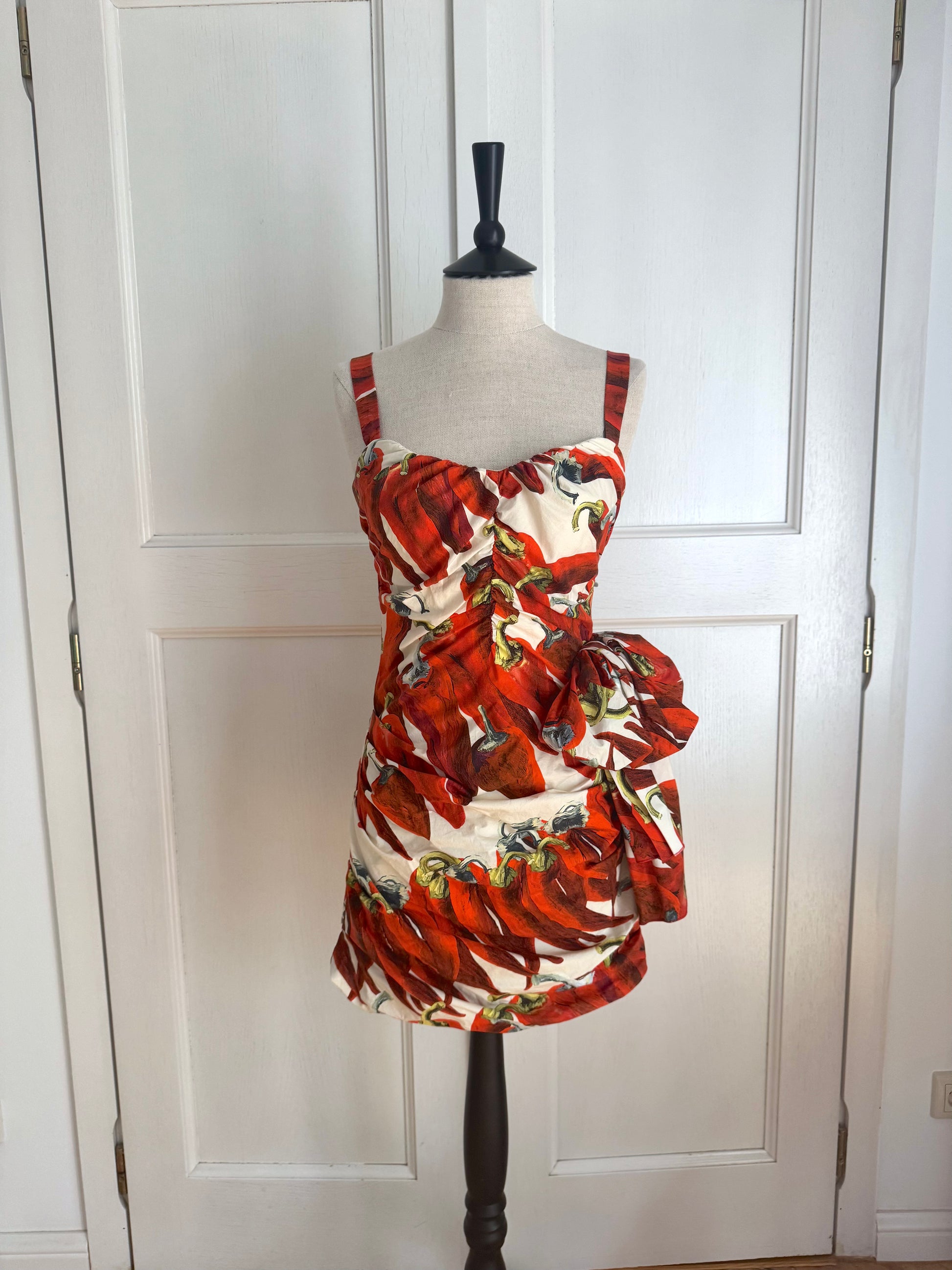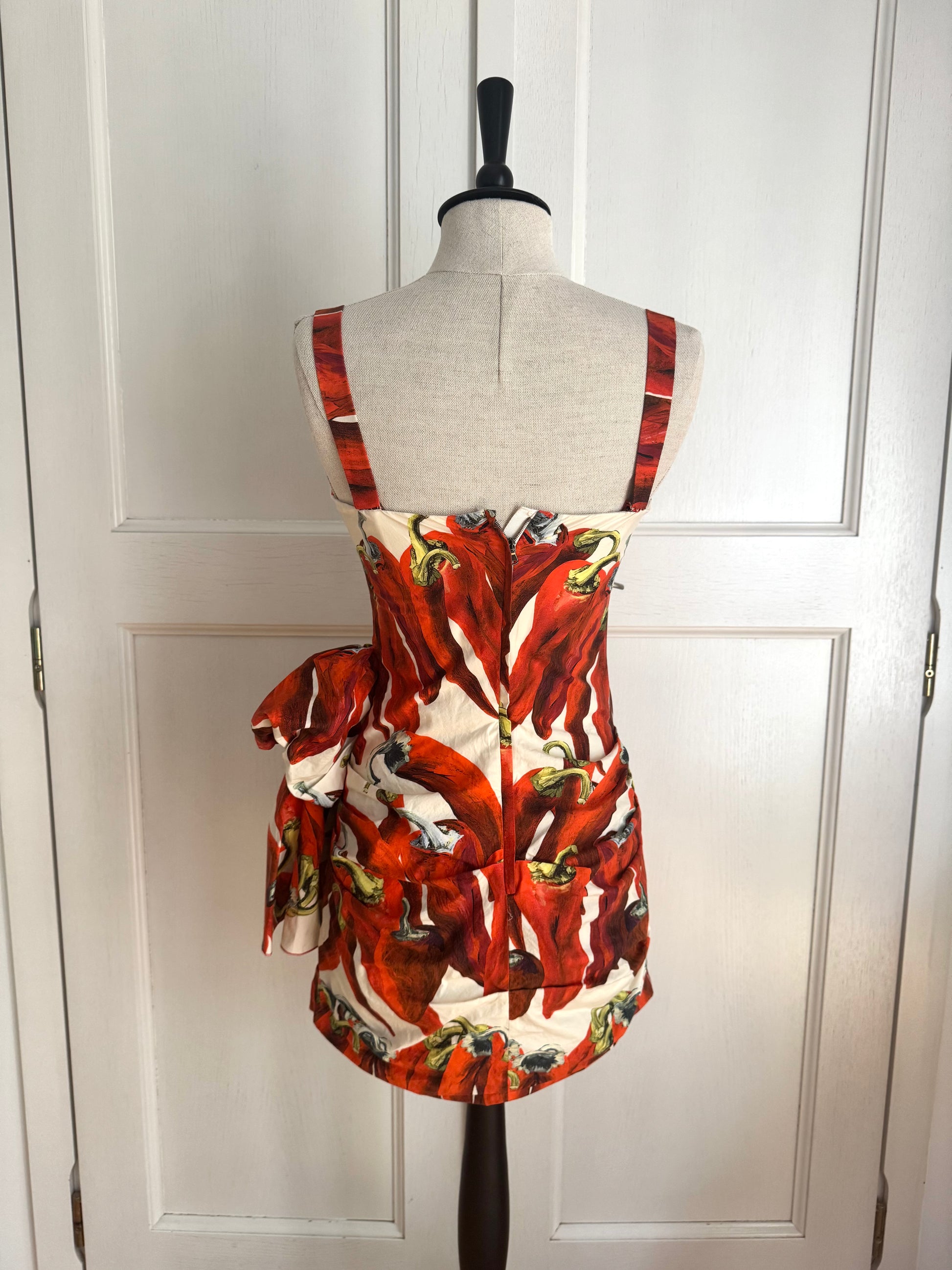 Beautiful Dolce and Gabbana 2012 runway dress in chilli peppers print with a big, decorative bow. The epitome of the Sicilian DG style - perfect for strolling around Italian streets or for a summer party in Capri!
