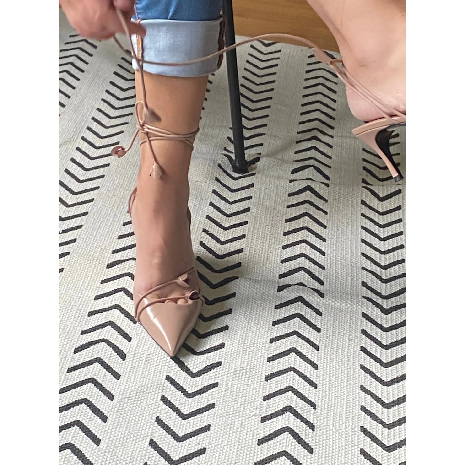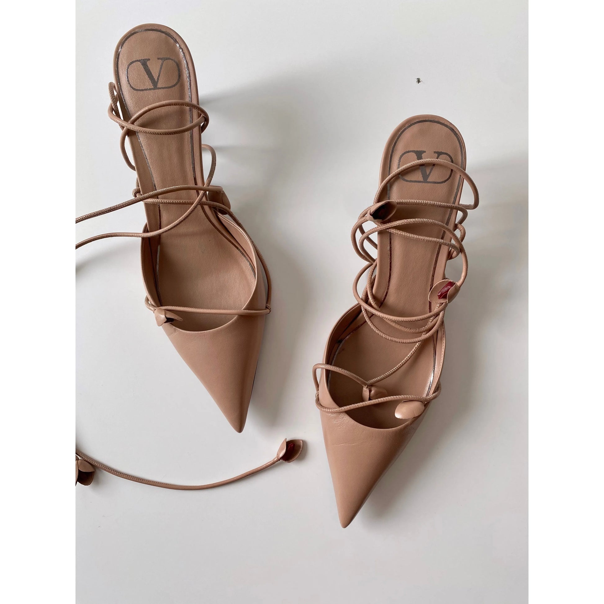 Stunning Valentino Garavani lace-up heels with leather rosebuds retailing. Something for classic and romantic souls. Meant to be treasured forever.