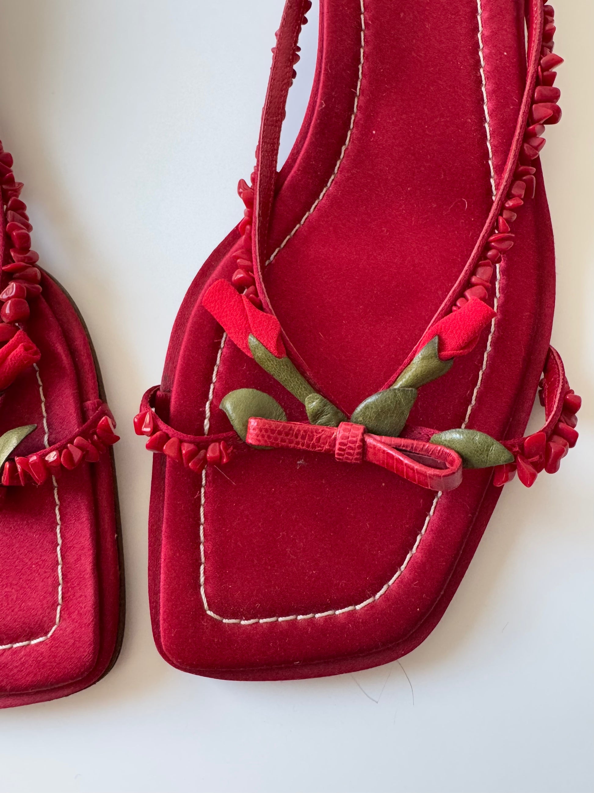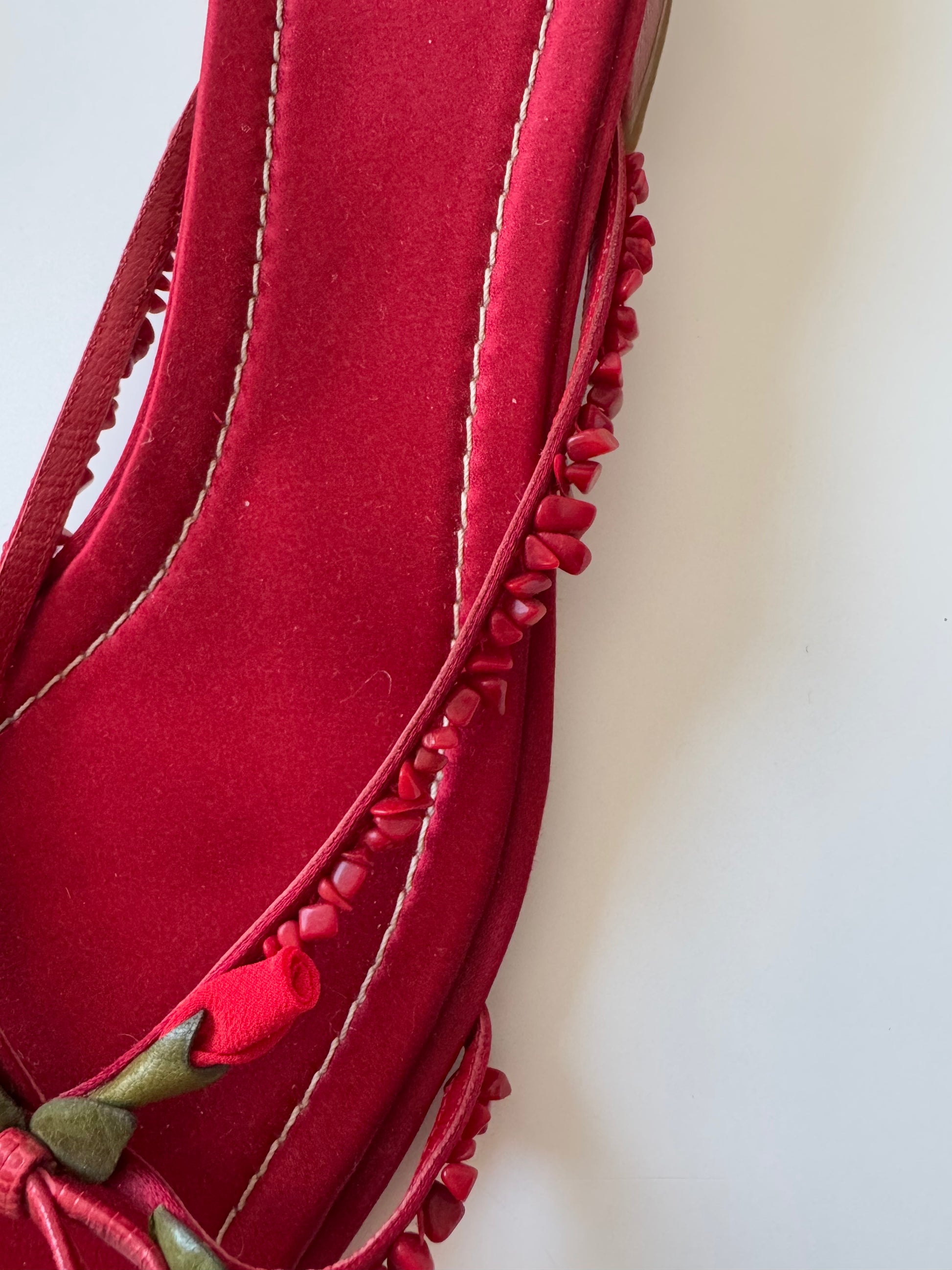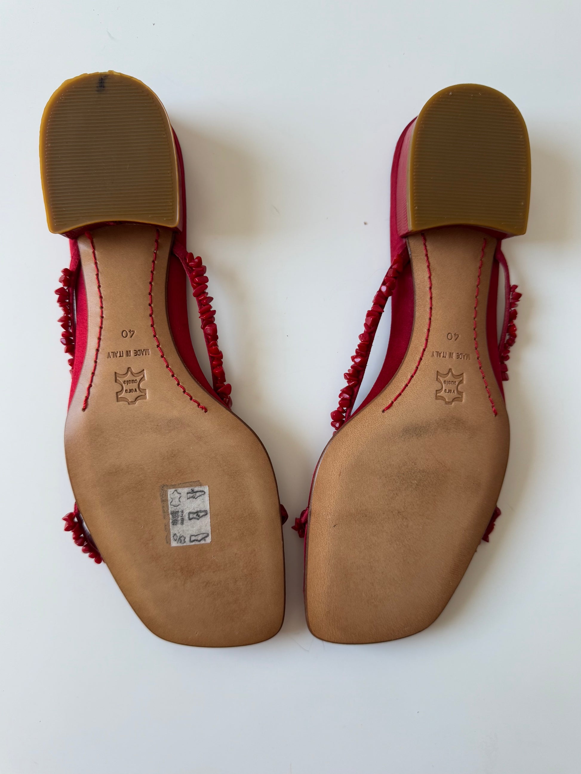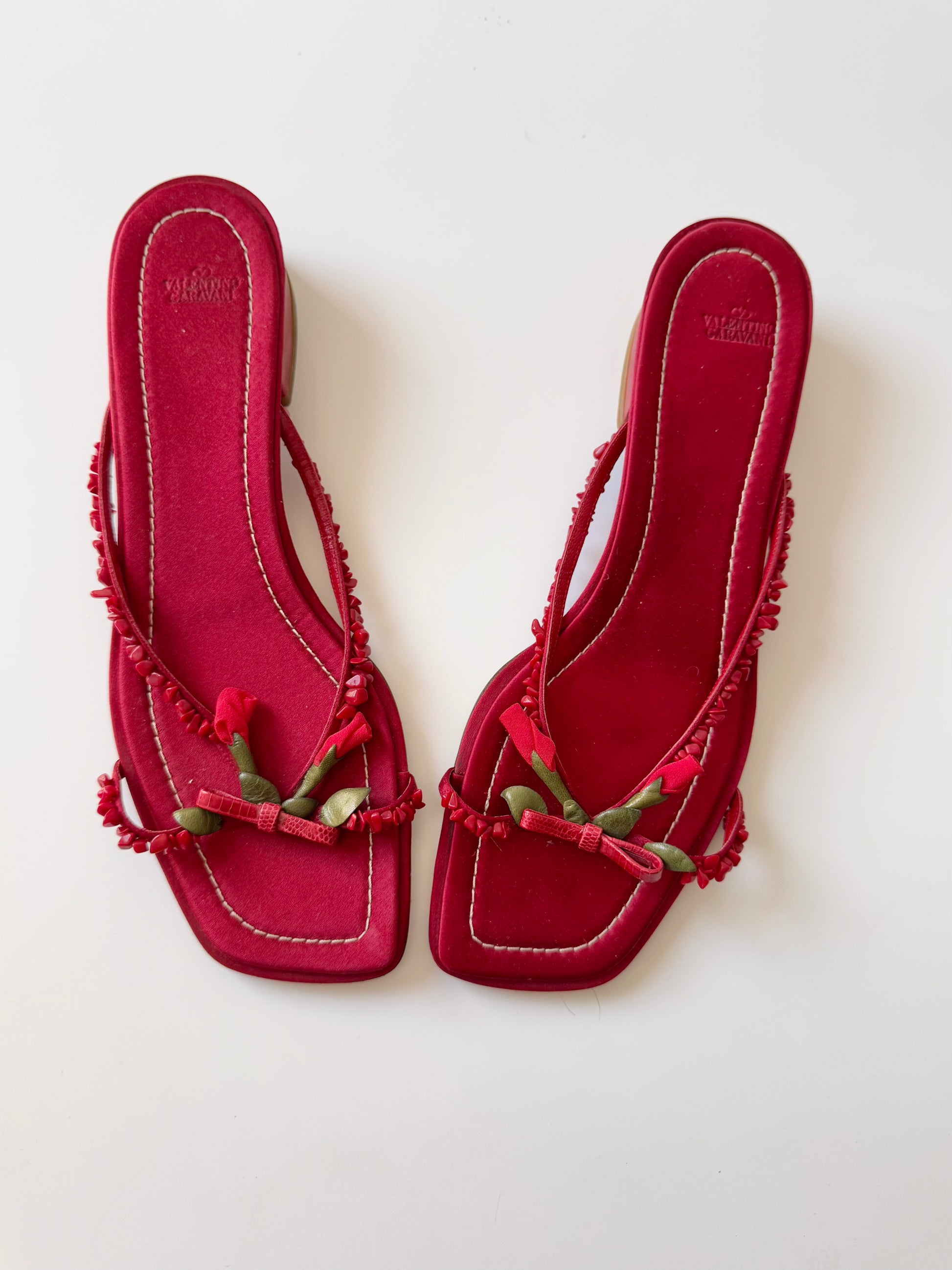 Absolutely stunning Valentino flats adorned with red flowers and leather leafs. Even soles are decorated with the iconic Valentino red stitching! Perfect for ice-cream dates and strolling around Positano streets. Italian craftsmanship at its finest! Sold with a complimentary Valentino box.