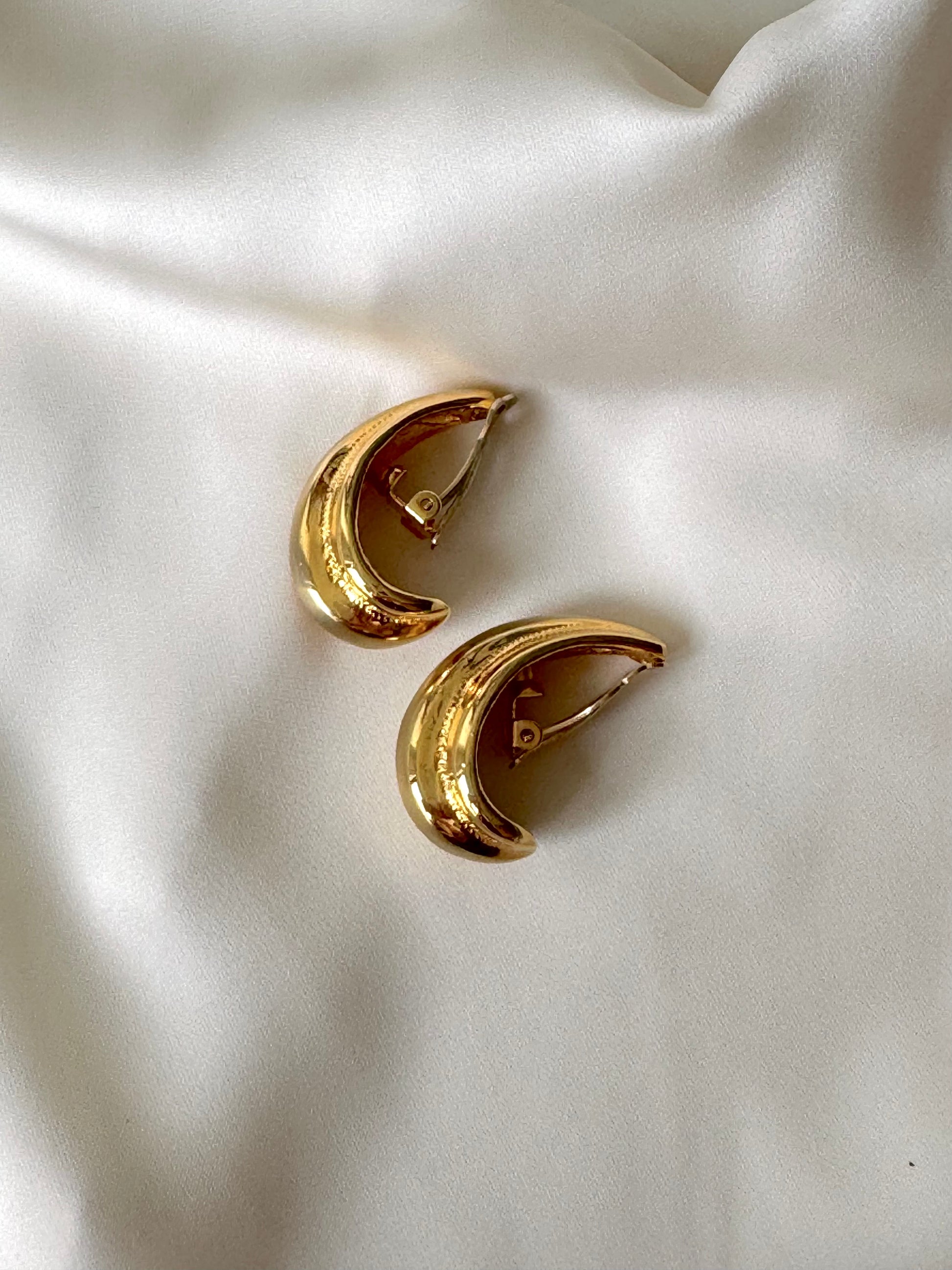 Very 90s, chunky clip-ons in gold - an absolute staple in everyone's closet! These beauties have the power to make every outfit look polished and add that little spark to your eyes whenever you wear them. Meant to be treasured forever.