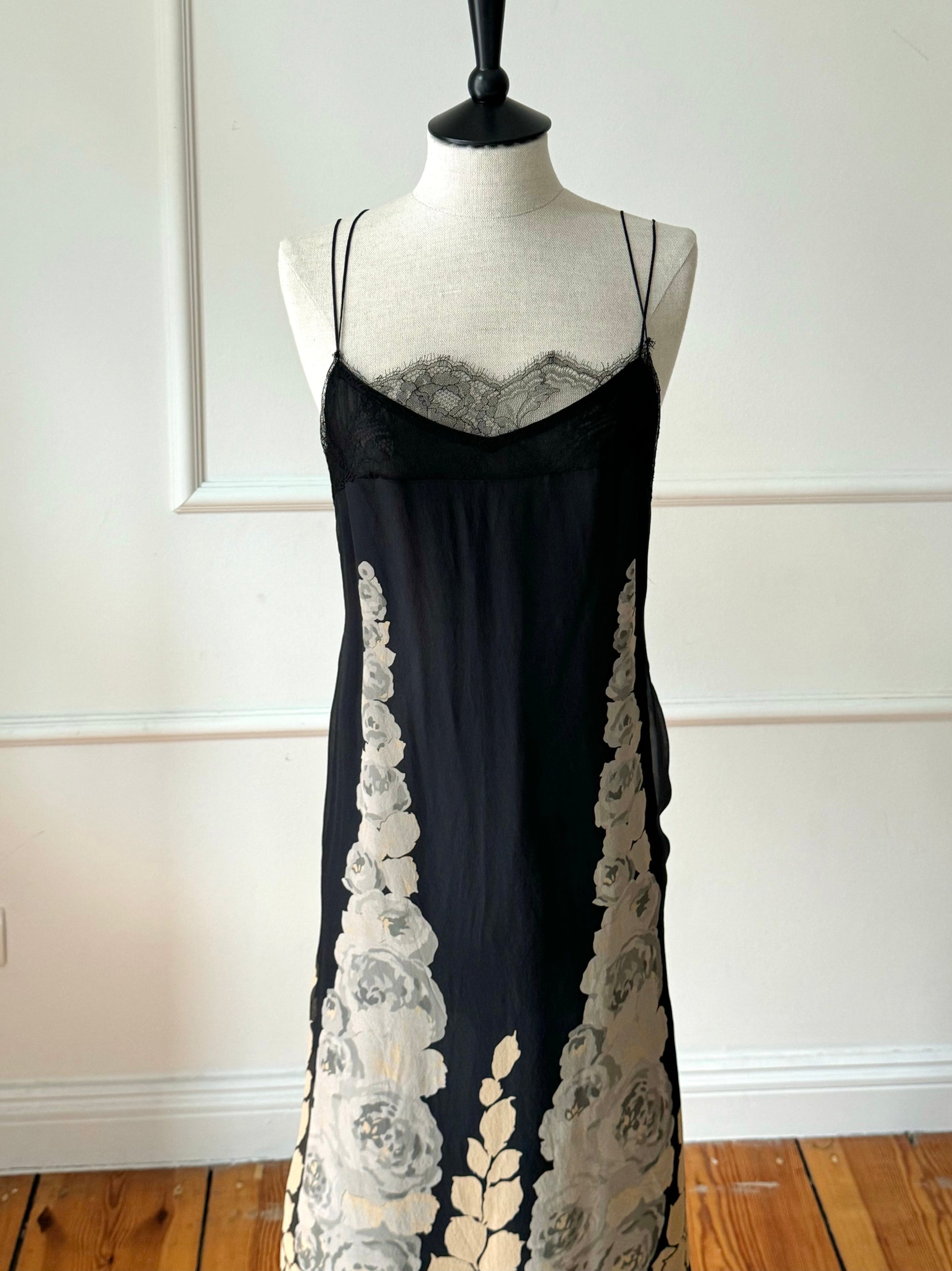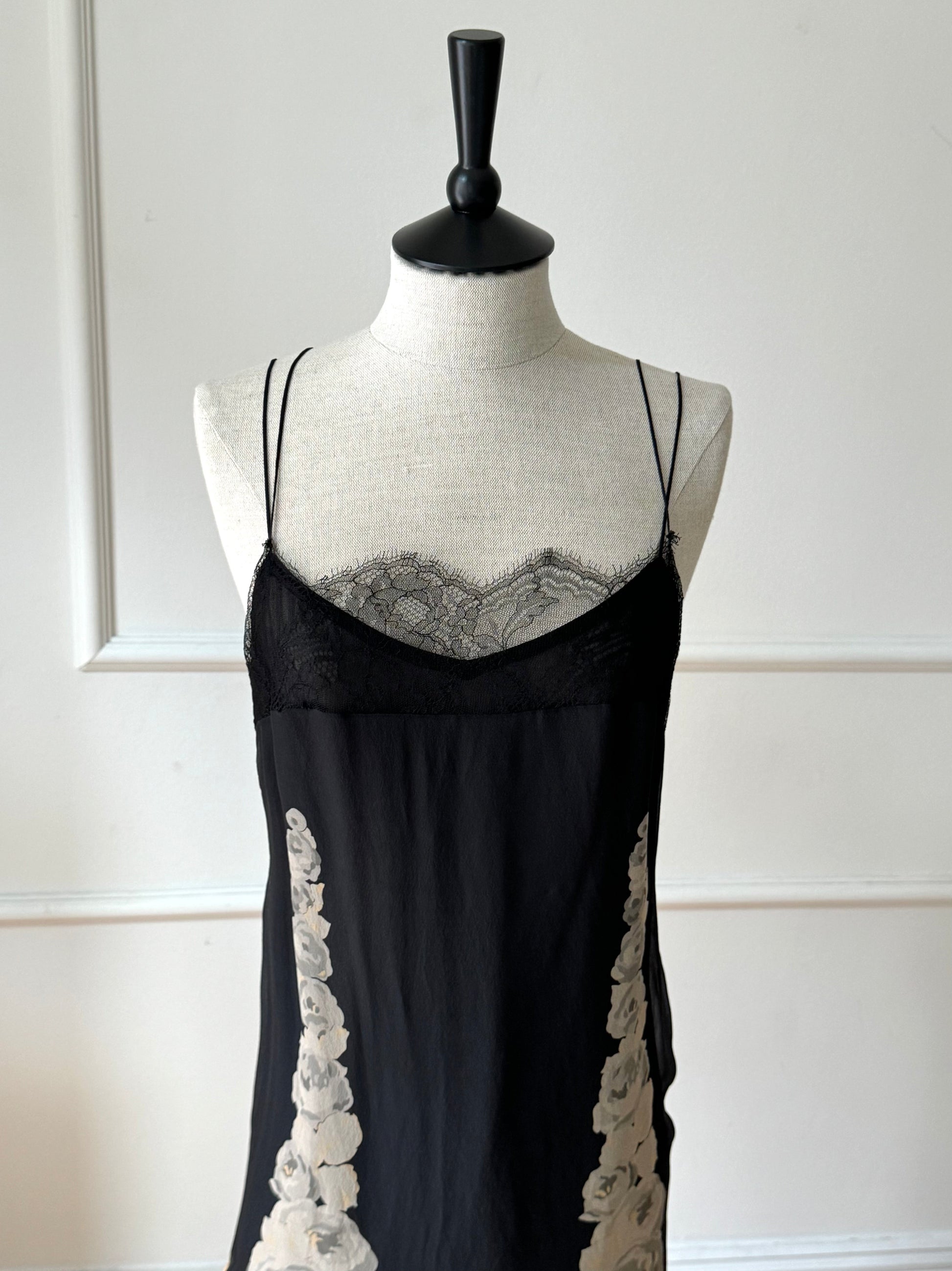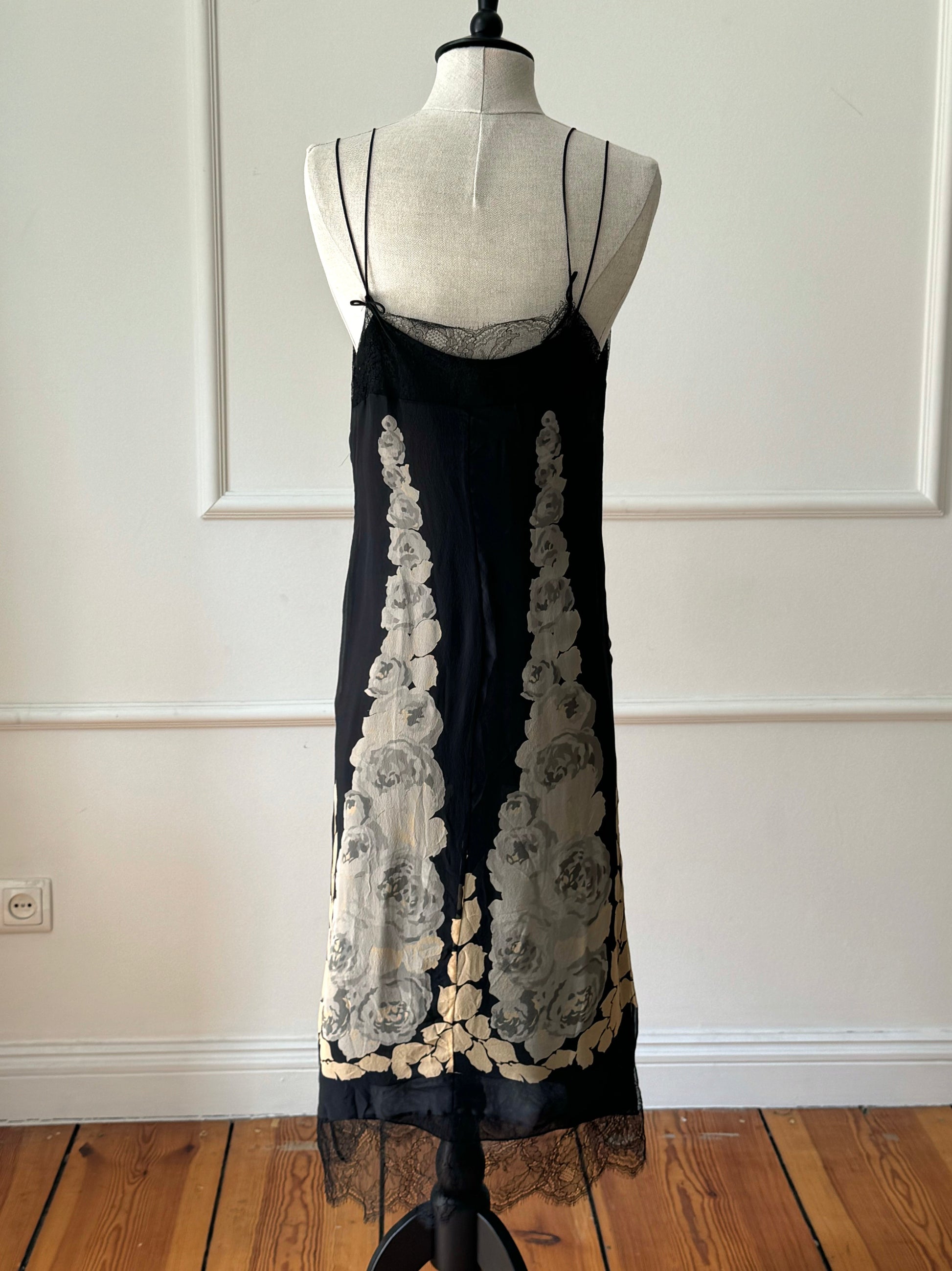 Stunning Blumarine dress that was introduced on the runway during 1998 Fall / Winter show and famously photographed by the legendary Helmut Newton on model Natalia Semanova. Absolutely beautiful piece with delicate bodice and romantic Chantilly lace - meant to be treasured forever. Sold with a complimentary slip dress.