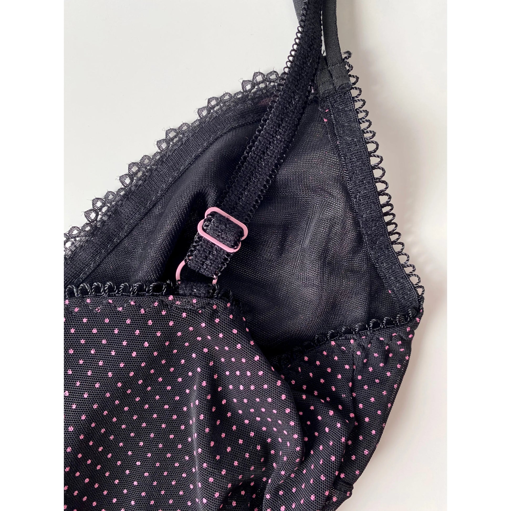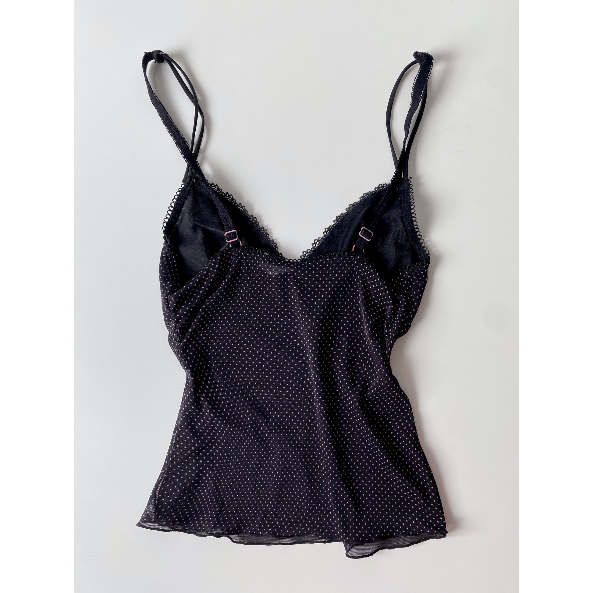 Vintage polka dot top with pink ribbon detailing at the décolletage, sourced from Paris! Something for romantic girls or y2k lovers. Can be worn as lingerie or a daring top.